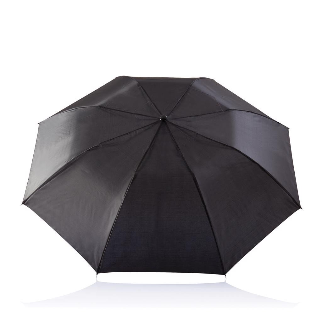 Parapluie pliable avec revêtement en polyester 210T. Poignée, baleines et capuchons en métal. Embout et poignée en PP. Fonctionnement manuel.