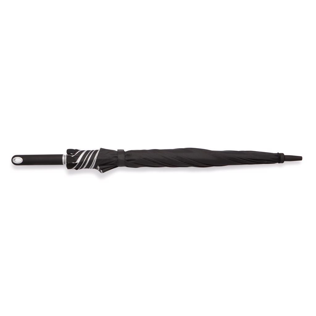 Hurricane est un parapluie de taille confortable, fabriqué dans un matériau de qualité supérieure, qui vous protège à la fois de la pluie et du soleil grâce à sa protection contre les UV. Le mécanisme d'ouverture rend ce parapluie facile à utiliser. Parapluie de conception manuelle en polyester pongé 190T avec tige et sommet en aluminium, baleines en fibre de verre, embouts et poignée en ABS. Emballé dans une boîte cadeau XD Design. Modèle déposé®.