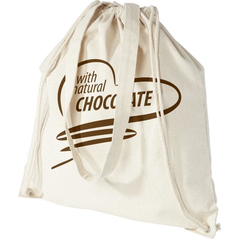 Sac en coton multifonctionnel doté de longues poignées et d'un cordon de serrage, pouvant être porté comme sac fourre-tout ou sac à dos. Grand compartiment principal avec fermeture à cordon. Doté de deux poignées tombantes d'une longueur de 31 cm. Capacité : 1,5 L, résistance jusqu'à 5 kg.
