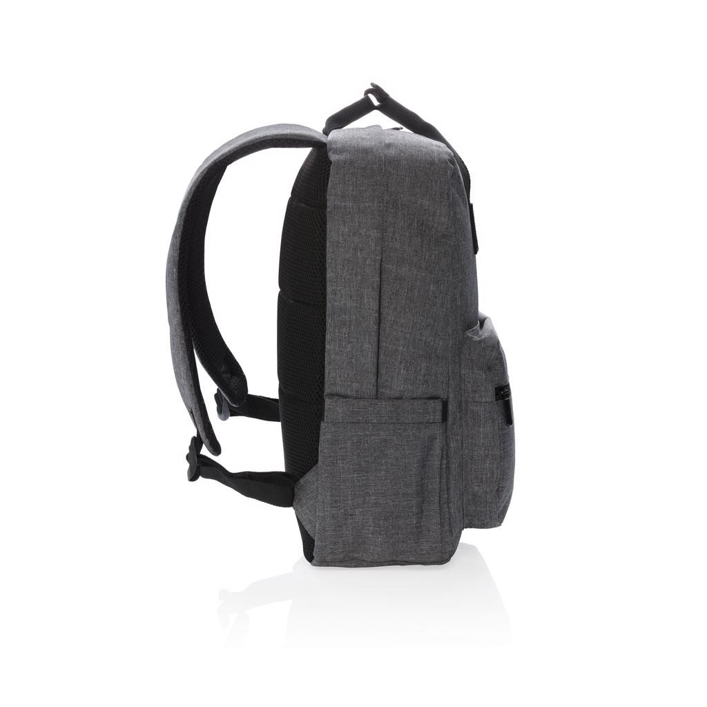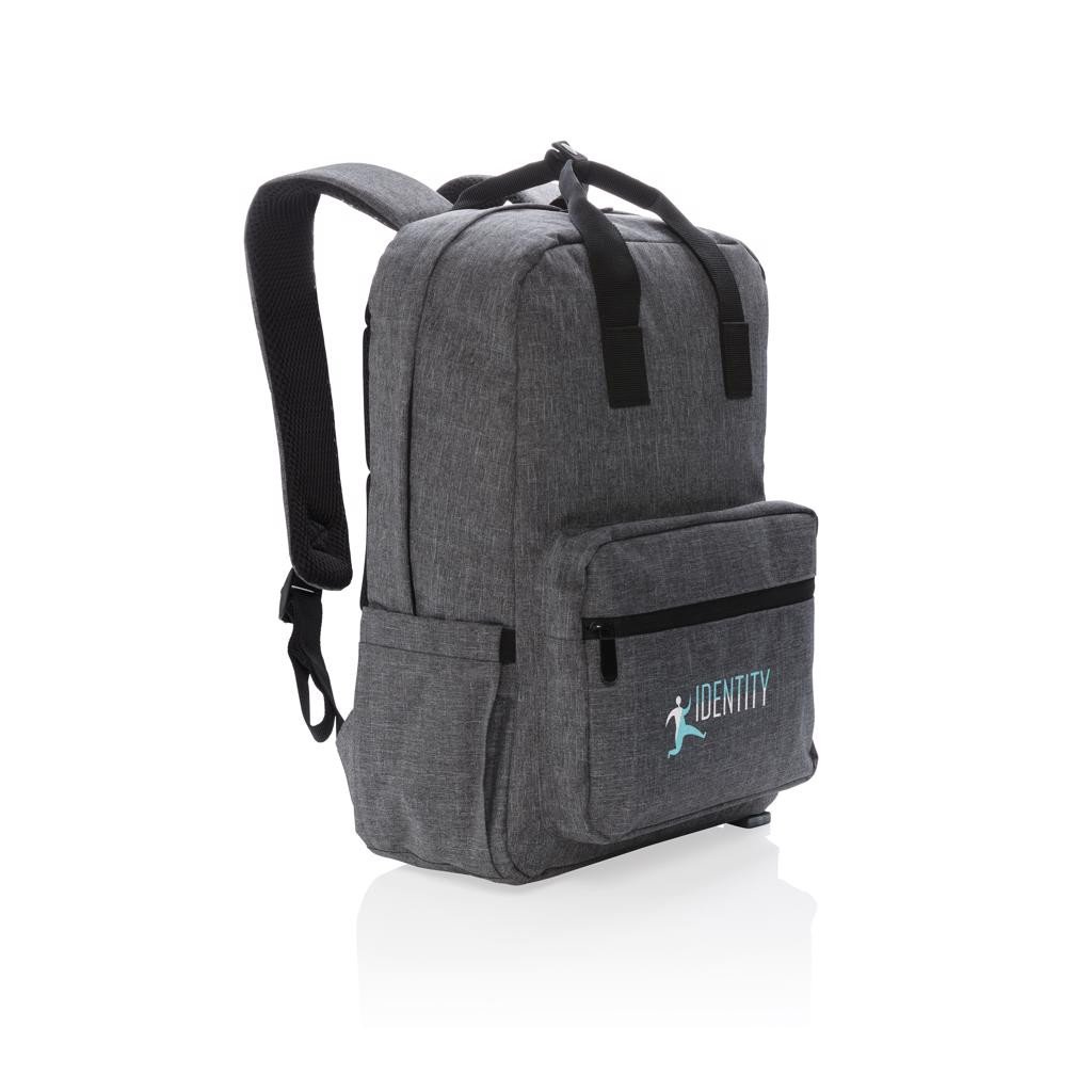 Sac à dos polyvalent qui peut être porté à l'épaule, à la main ou comme sac à dos, avec un compartiment rembourré pour ordinateur portable de 15'' et des poches avec protection RFID. Sans PVC.