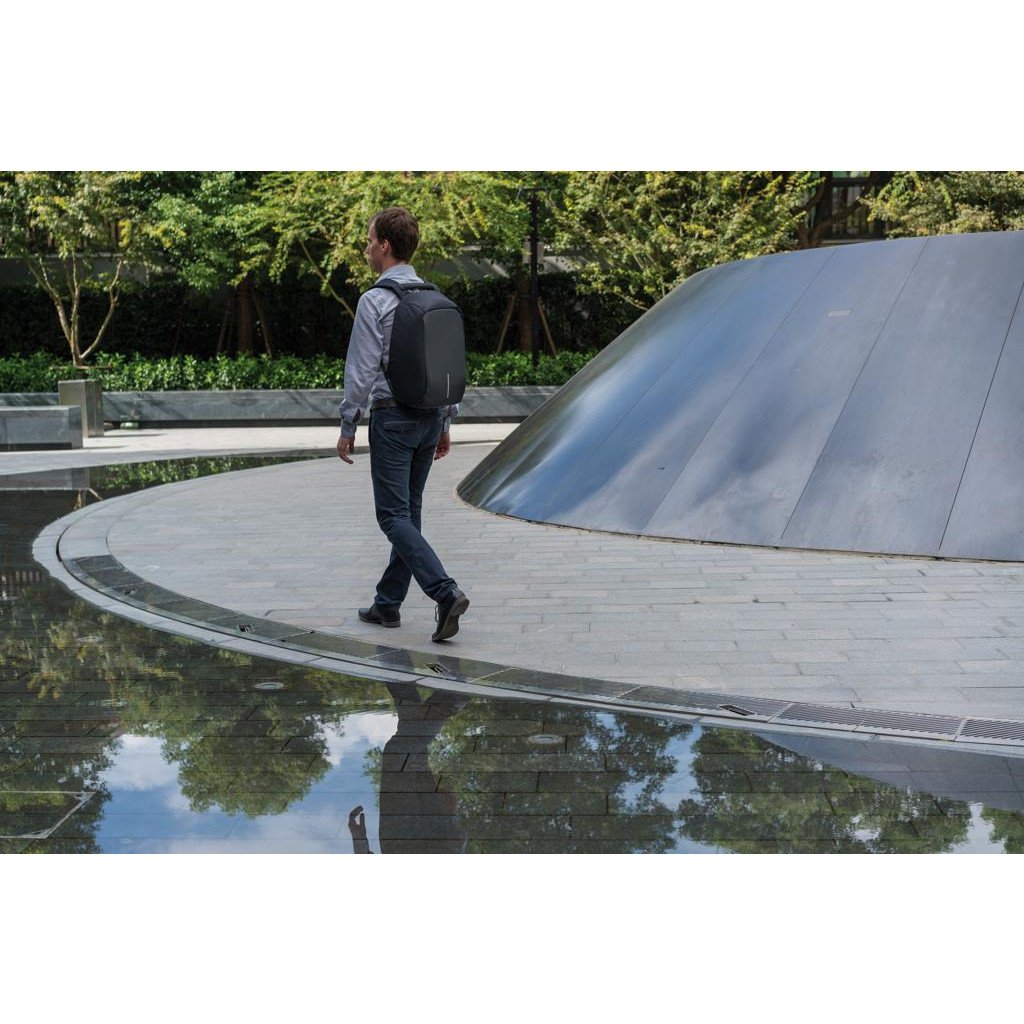 Chaque jour, 400 000 incidents de vol à la tire se produisent dans le monde. Ne craignez plus que cela vous arrive grâce à ce sac à dos antivol Bobby ! Il est fabriqué en polyester de haute qualité et comporte des impressions réfléchissantes pour votre sécurité nocturne. A l'extérieur, il possède de nombreuses poches cachées pour faciliter les déplacements. À l'intérieur, il y a des compartiments rembourrés pour un ordinateur portable de 15,6 pouces, une tablette jusqu'à 10 pouces et tous vos autres effets personnels. Modèle déposé ®.