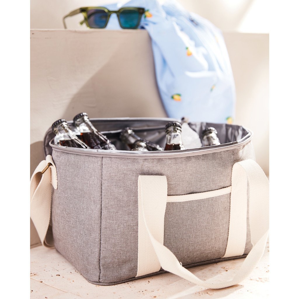 L’ultime glacière chinée ton sur ton avec des détails en imitation cuir et coton. Modèle avec compartiment extérieur plus petit pour ranger d'autres affaires. Le rembourrage épais en PEVA conserve le froid pendant longtemps. Facile à nettoyer à l’intérieur comme à l’extérieur après utilisation. Bandoulière réglable et deux poignées permettant de porter la glacière de plusieurs façons.