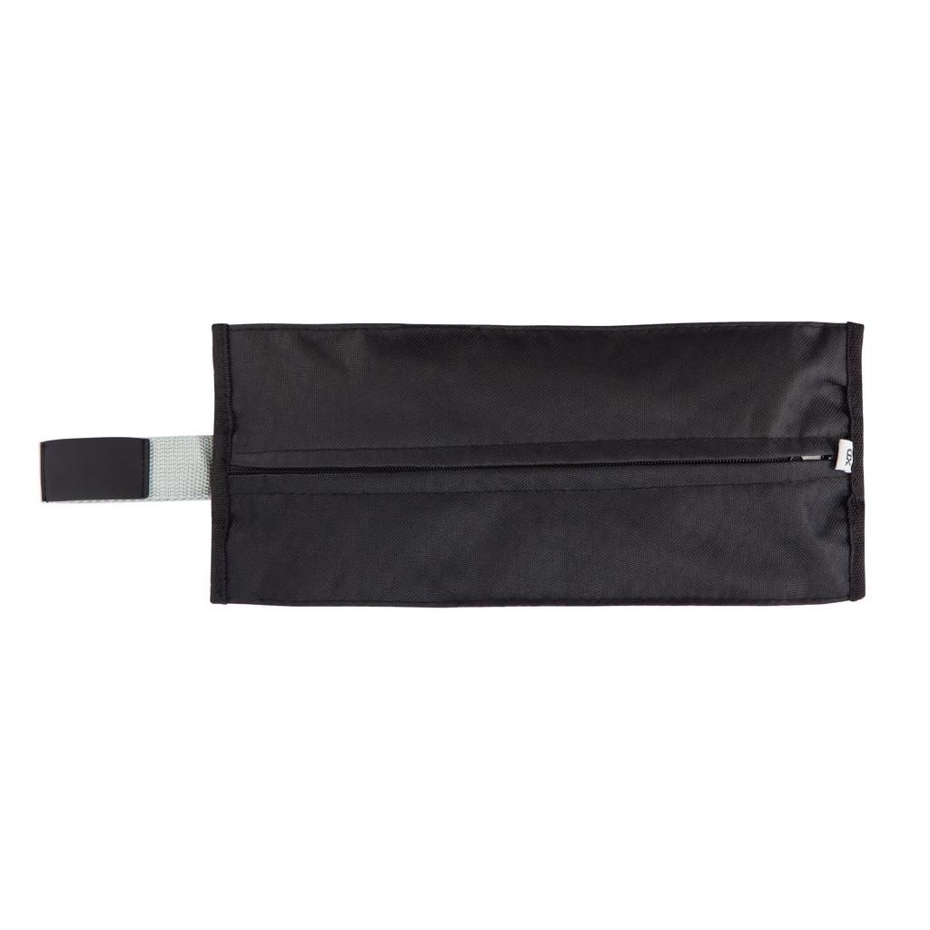 Pochette nylon 600D avec torche dynamo, gilet de sà? ©curità? ©, gant de travail 10â ? et kit de premiers secours avec bandage triangulaire, bandage, lingettes alcoolisà? ©es, compresses, pansements, ciseaux, à? ©pingles à? nourrice et rouleau de sparadrap. Conforme à? la norme EN13485:2003. Dimensions 32,5 x 14 x 4,5 cm.