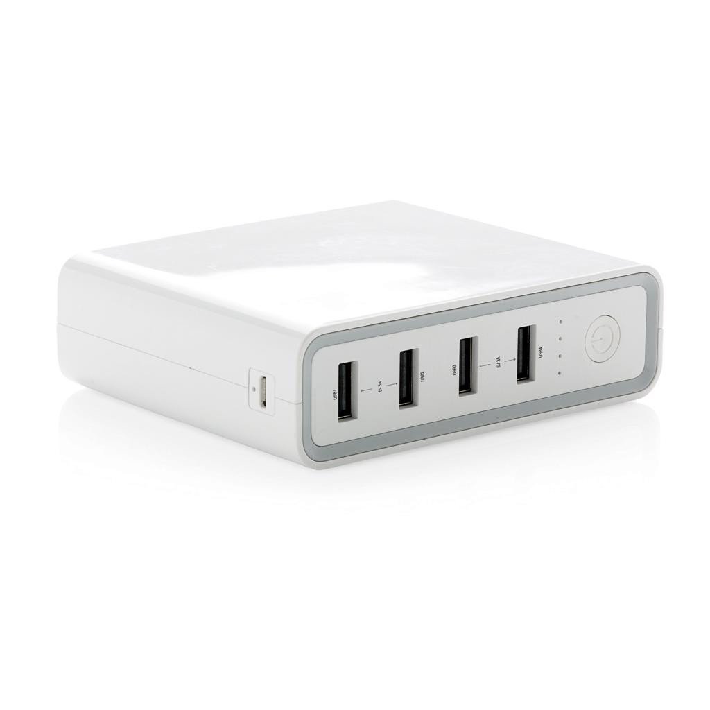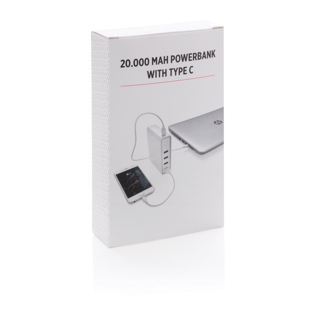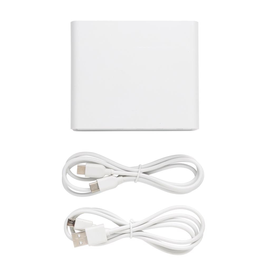Powerbank 20000 mAh en ABS, doté de 4 ports USB et d'un port de type C 3.0 (entrée et sortie). L'appareil peut être chargé à la fois par le port micro USB (2A) et le port de type C super rapide (entrée 2.4) Port USB de sortie : 4x 5v/2A et 1 5V/9V/14.5V/2.4A, convient au chargement de téléphones et tablettes, et même d'appareils encore plus grands comme les MacBooks et Nintendo Switch. Avec câble de type C et micro USB.