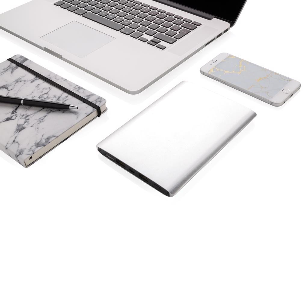 Powerbank 18000mAh en aluminium robuste avec double port USB pour recharger deux appareils en même temps, un de 2.1A pour les tablettes et une autre sortie 1A pour les téléphones. Peut charger jusqu'à deux fois une tablette et un téléphone six fois. Sortie 5V/3.1A, entrée 5V/1.5A, câble micro USB inclus.
