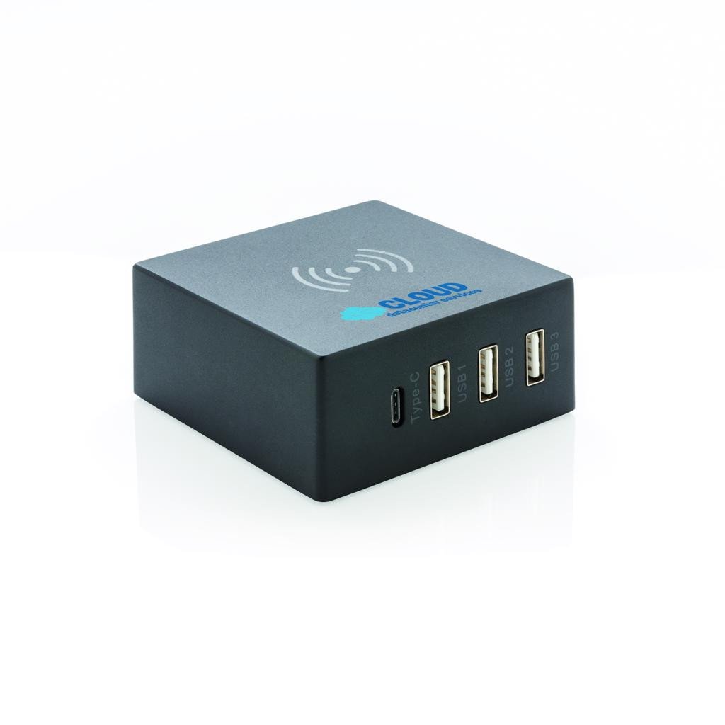 Station de charge USB 2 en 1, vous permet de charger votre téléphone via induction ou via un port USB/USB C. Pour charger sans fil il vous suffit de placer votre téléphone au-dessus pour que le chargement commence. Les ports USB fournissent une sortie 6A et aide au chargement rapide de vos appareils portables via USB C (3A). Câble de 1,5 mètre inclus pour le brancher à une prise de courant. Le chargement sans fil est compatible avec tous les QI d'autres appareils de dernière génération comme Android, iPhone 8 et plus. Input AC: 100-240v/50-60Hz. Output 5V/6A.