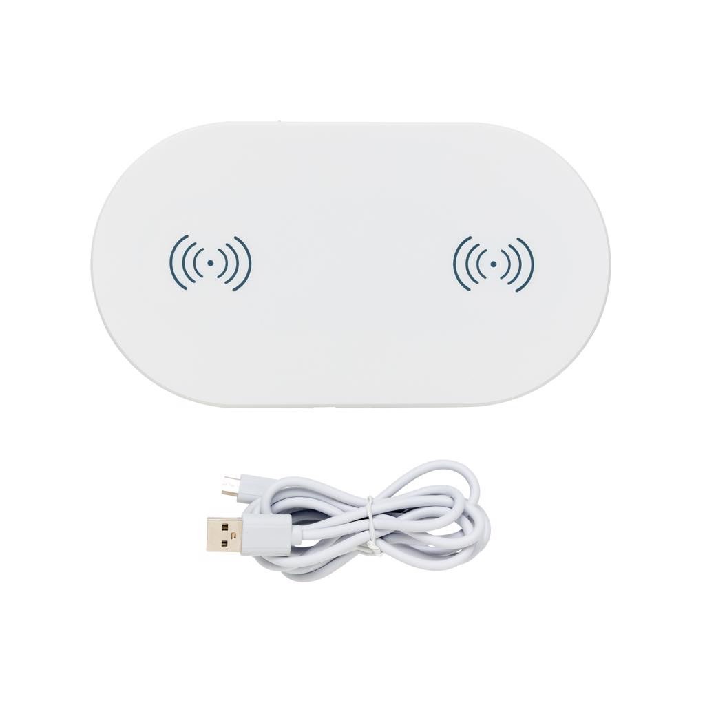 Plaque de chargement à induction 5W en ABS permettant de charger deux téléphones mobiles simultanément et sans câble. Branchez simplement la plaque de chargement sans fil à une source d'alimentation USB grâce au câble micro USB 150 cm et vous pourrez charger votre téléphone quand vous voudrez en le posant simplement sur la plaque. Si vous chargez deux appareils, il est recommandé d'utiliser un chargeur USB 2,1 A pour maintenir une vitesse de chargement optimale. Chargeur sans fil compatible avec tous les appareils supportant la recharge sans fil (Qi) comme Android dernière génération, iPhone 8 et plus. Entrée : 5 V/1 A, sortie induction : 5 V/1 A, 5W.