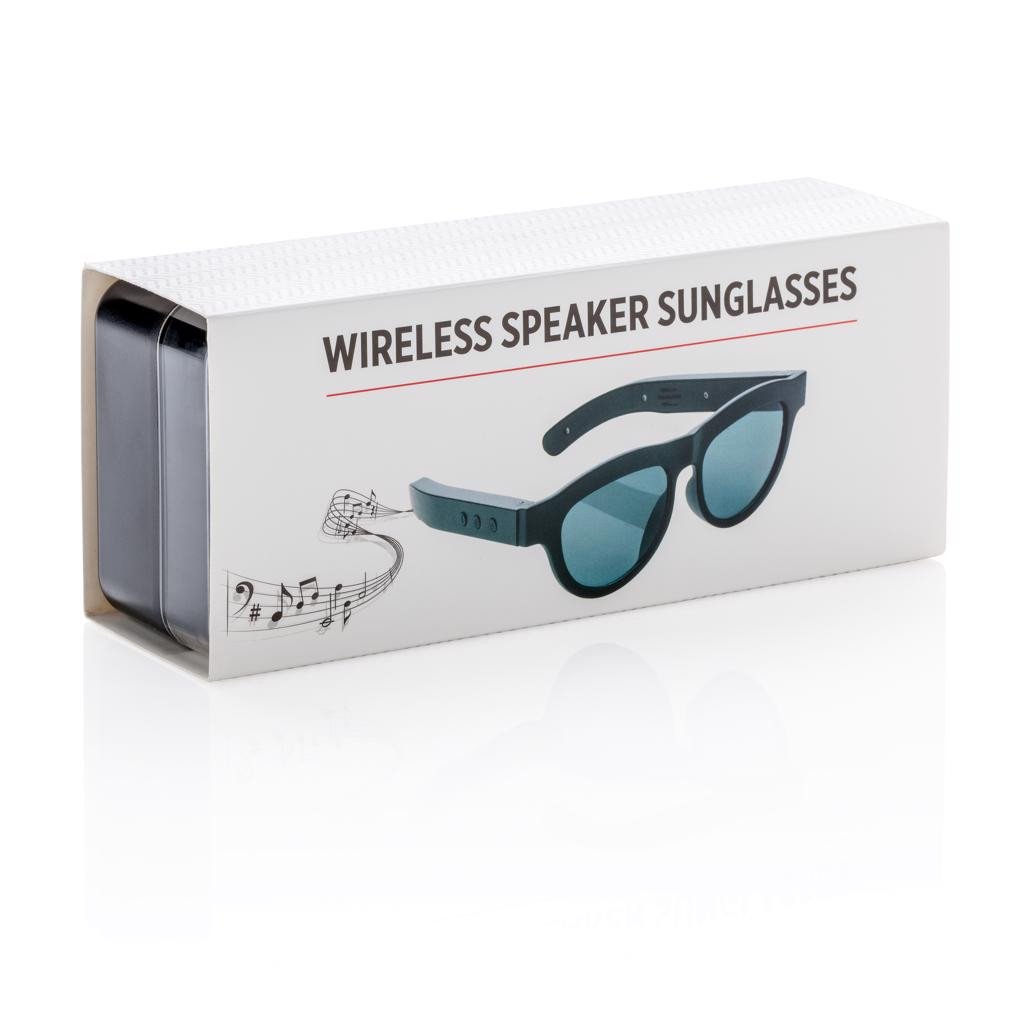 Lunettes de soleil avec enceinte intégré en PC ultraléger et verres UV400. Connectez votre téléphone aux lunettes pour écouter votre musique préférée via 2 haut-parleurs de 1 W. Connexion facile via BT 4.2 pour une distance de fonctionnement allant jusqu'à 10 mètres. Batterie de 110 mAh pour écouter votre musique préférée jusqu'à 3 heures. Avec micro et fonction prise d'appel pour répondre à vos appels. Boîtier de transport transparent et câble micro USB inclus.