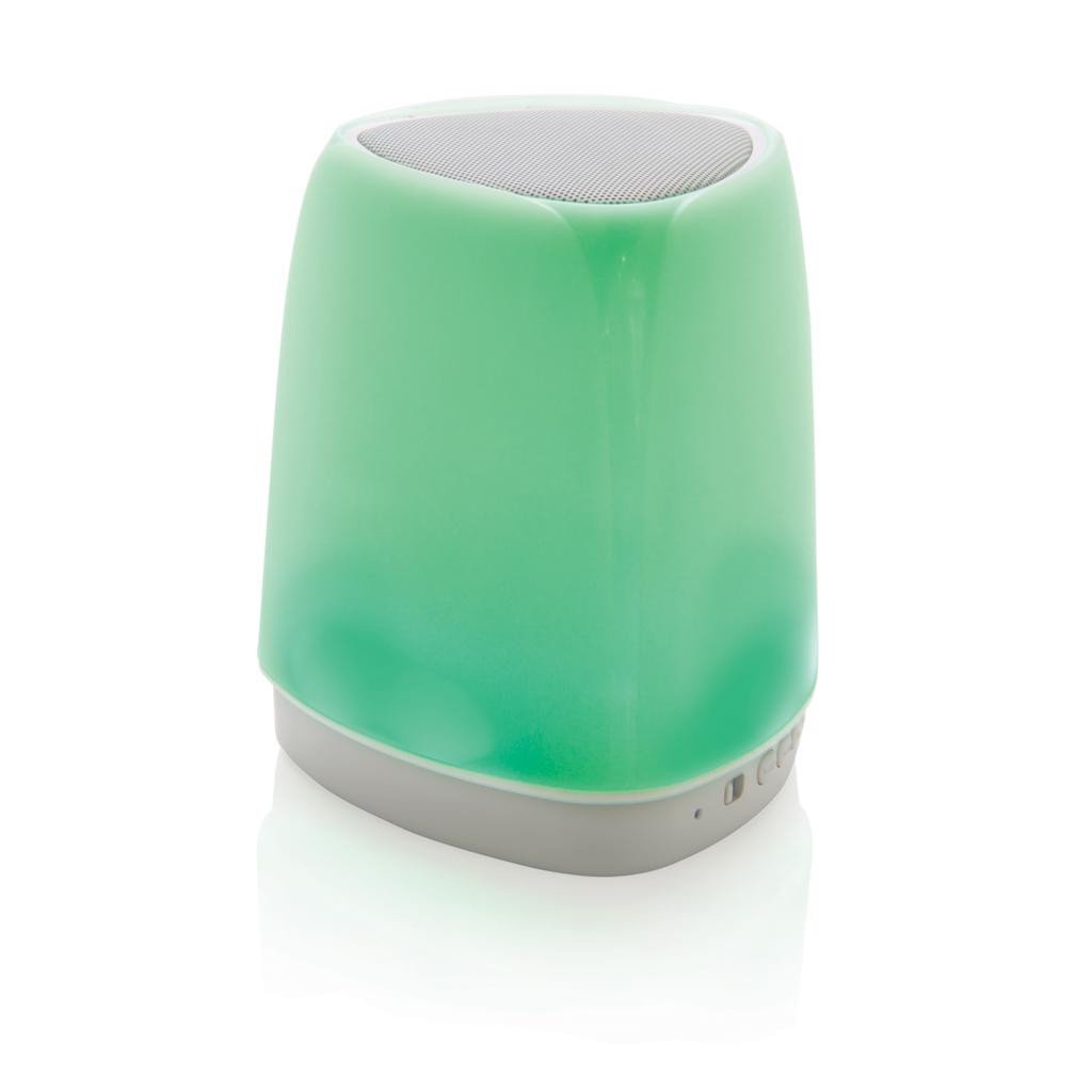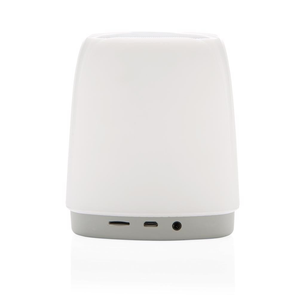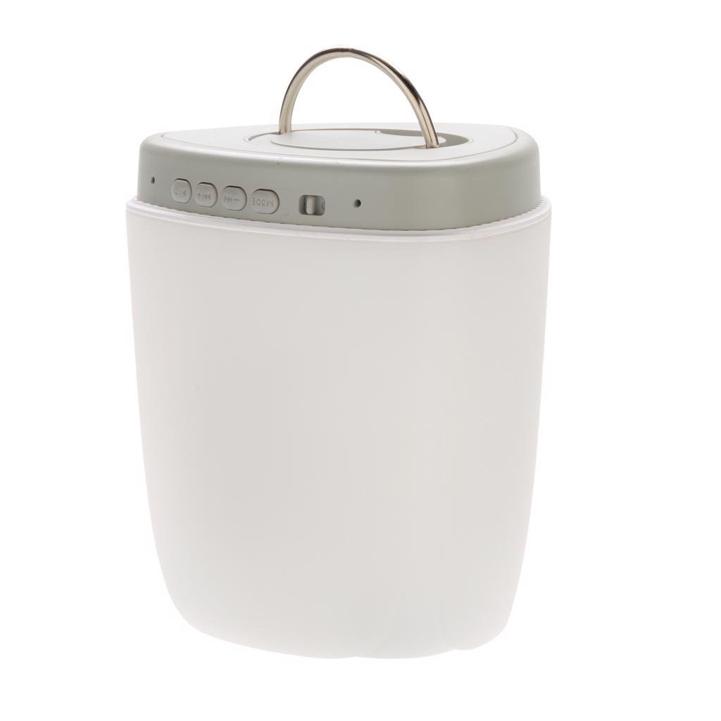 Haut-parleur 3W avec batterie de 1500mAh ( ± 5 heures d'écoute). Une simple pression sur le dessus permet de changer la couleur de la LED intégrée. Technologie BT 2.1 pour une connexion jusqu'à 10m. Facile à transporter avec son crochet en métal qui permet de l'accrocher o๠vous voulez. Câble micro USB inclus.