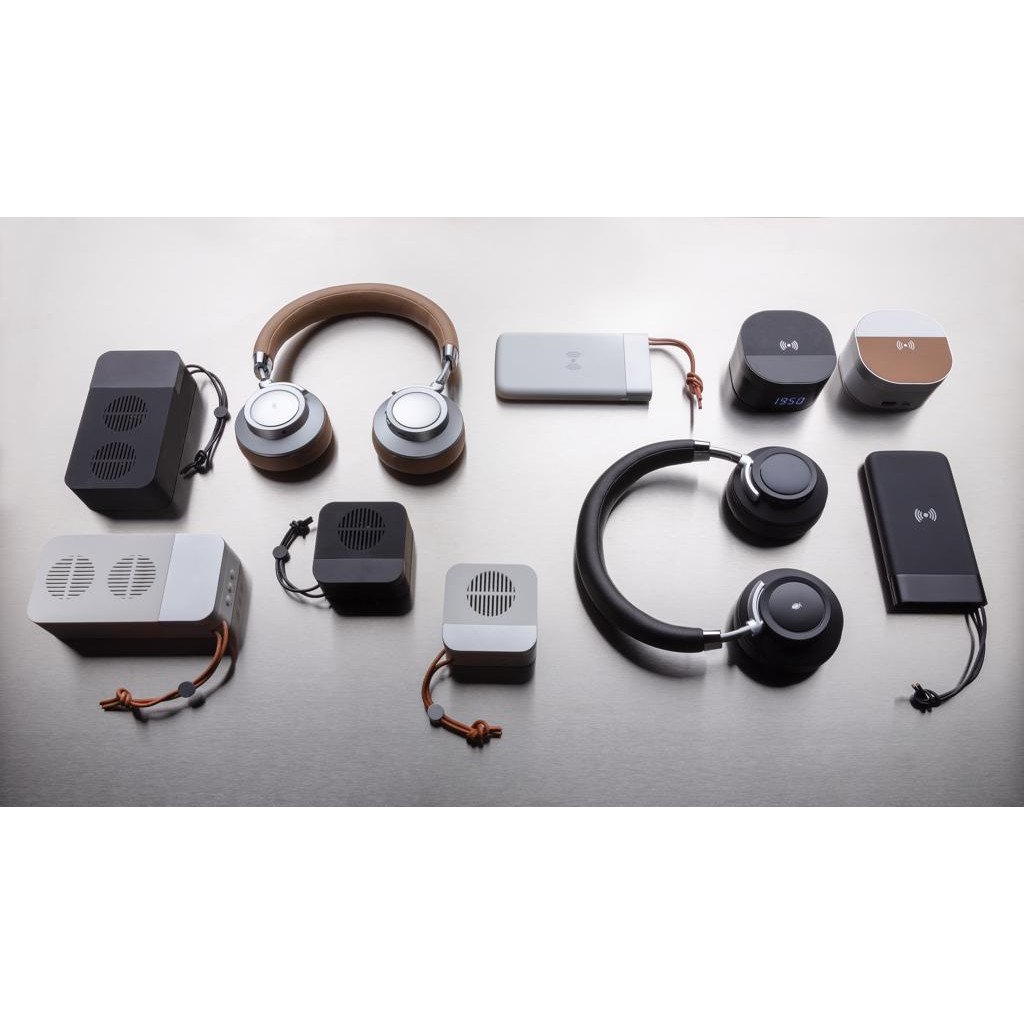 Haut-parleur 10W avec BT 5.0 pour une connexion facile et batterie 2000 mAh vous garantit jusqu'à 10 heures d'écoute par charge. Fabriqué à partir d'aluminium, ABS finition soft touch et dragonne en PU. Emballé dans une boite cadeau. Modèle déposé®.