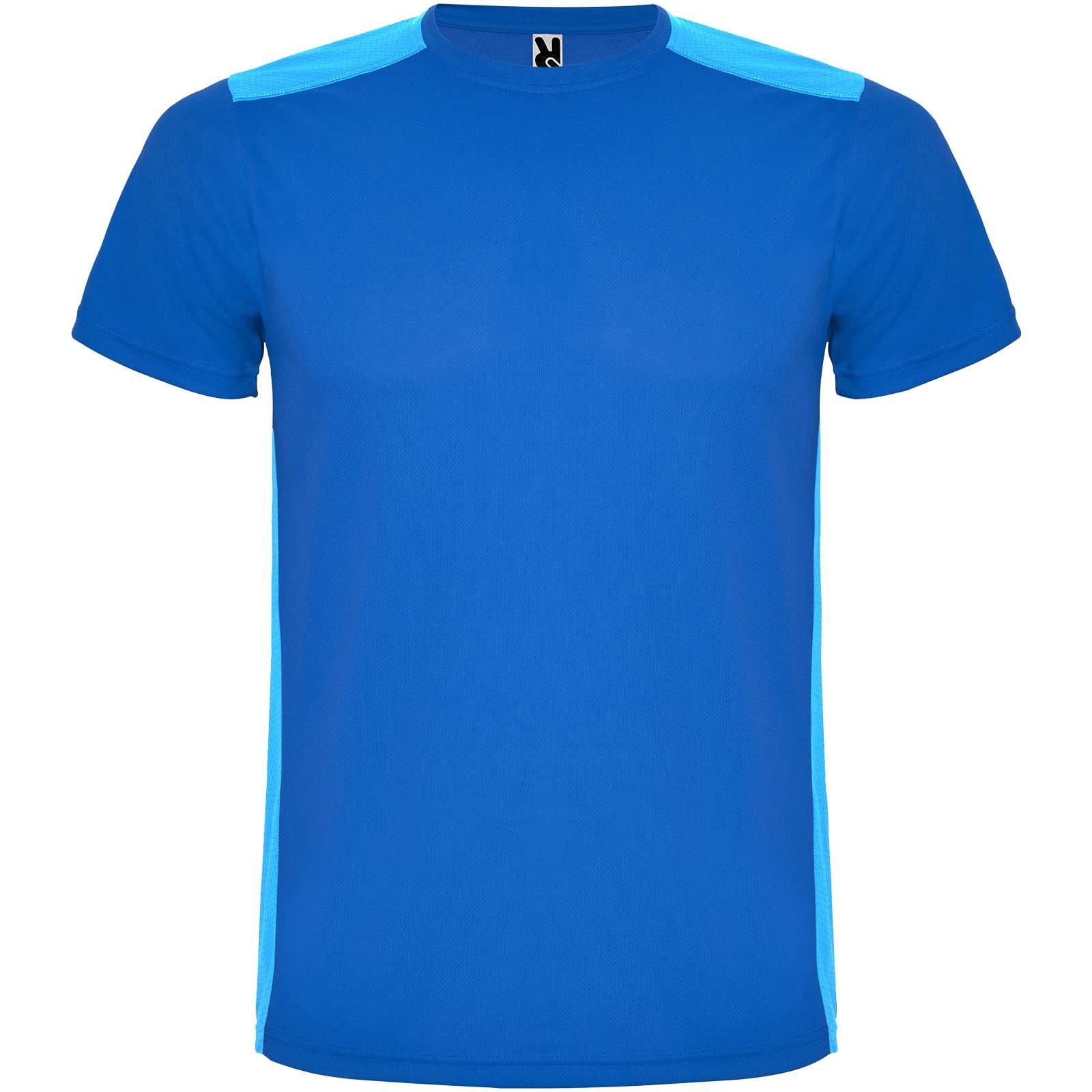 Tissu technique et respirant, facile à sécher. Col ras-du-cou. Confectionné avec deux tissus en polyester sur le dos et les épaules. Tissu œil d’oiseau à l’avant et tissu en maille 3D respirant à l’arrière. Tissu conçu pour absorber l’humidité. Point arrière décoratif en zigzag sur les côtés et les épaules. Patron du dos légèrement plus long. Étiquette détachable.