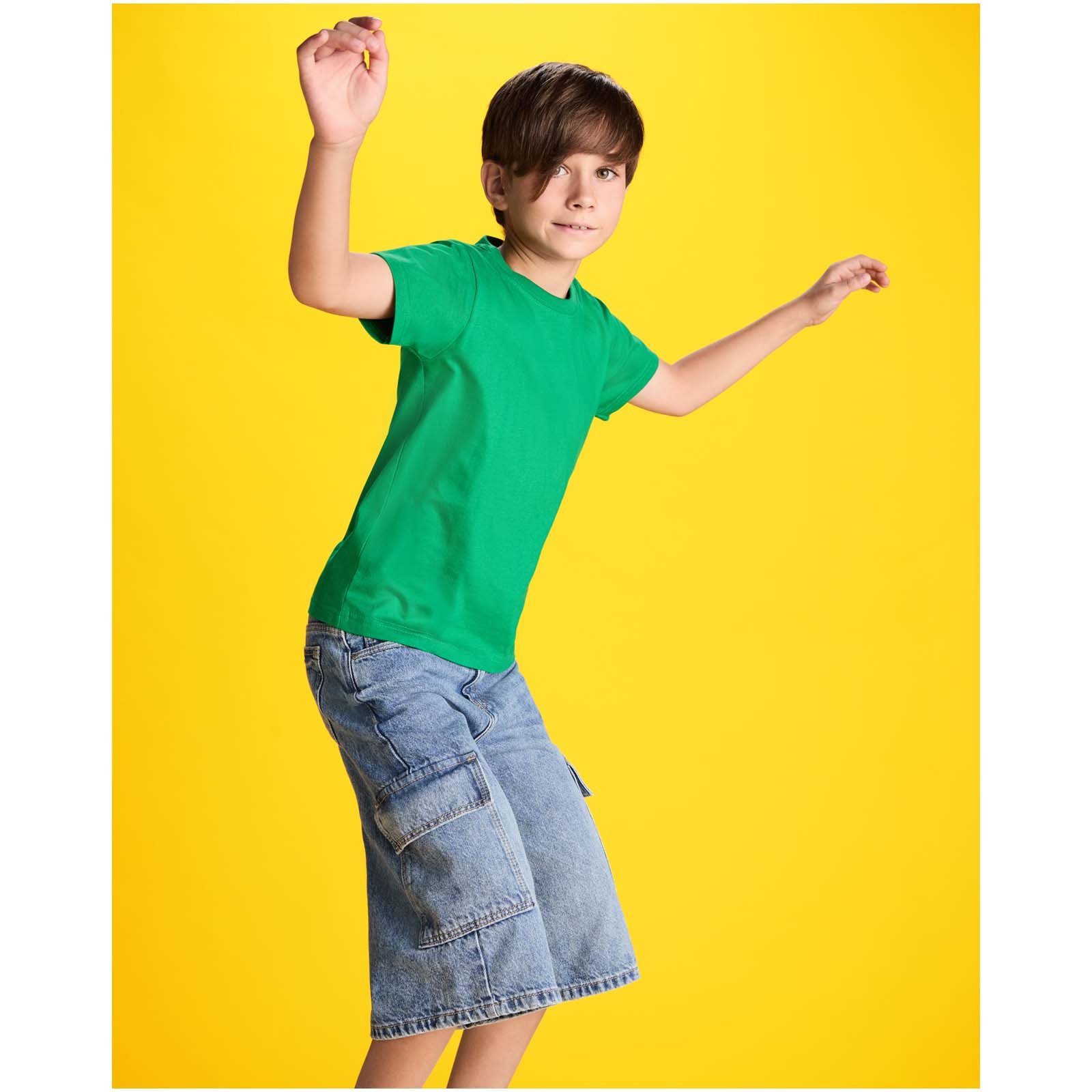 T-shirt à manches courtes avec col rond, quadruple épaisseur, et bande de propreté pour encolure et épaules. Coutures latérales.