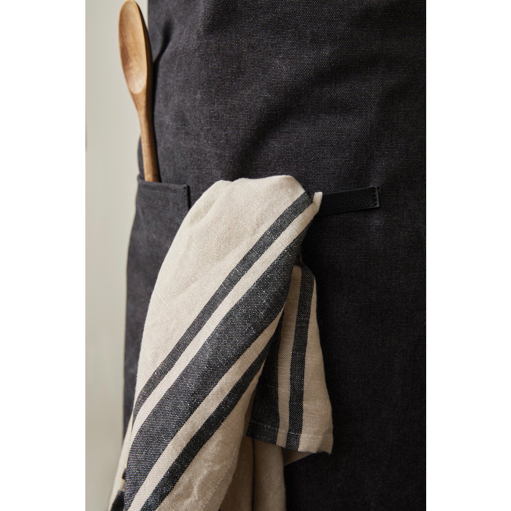 Tablier fabriqué à partir de matériaux recyclés vérifiés à 87 %. Ce tablier élégant constitue un accessoire de cuisine pratique et affiche un joli design : pas question de renoncer au style, même lorsque vous faites la cuisine ! Le tablier dispose d'une poche sur le devant et d'un passant pour accrocher des ustensiles ou des torchons, de sorte que vous ayez tout à portée de main quand vous êtes en train de cuisiner. Le tour de cou du tablier est souple et ajustable, pour plus de confort.
