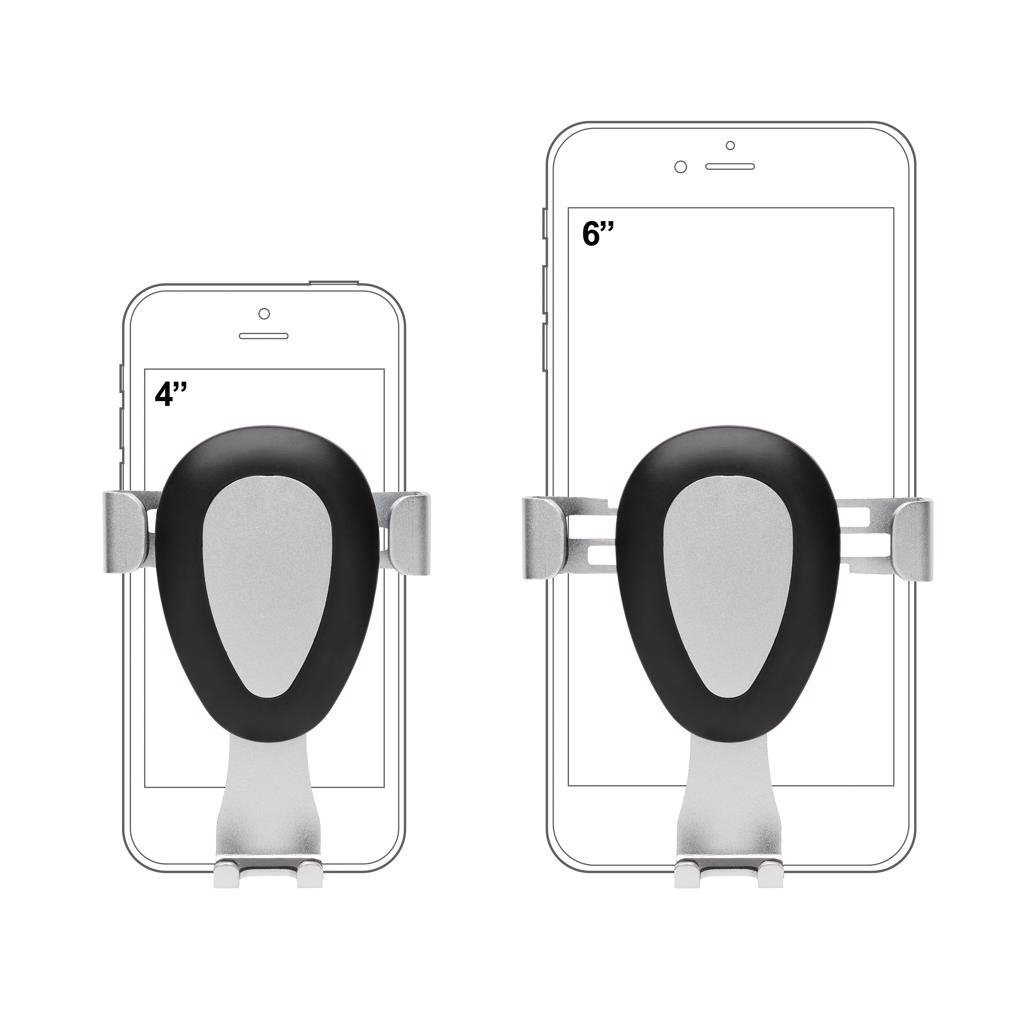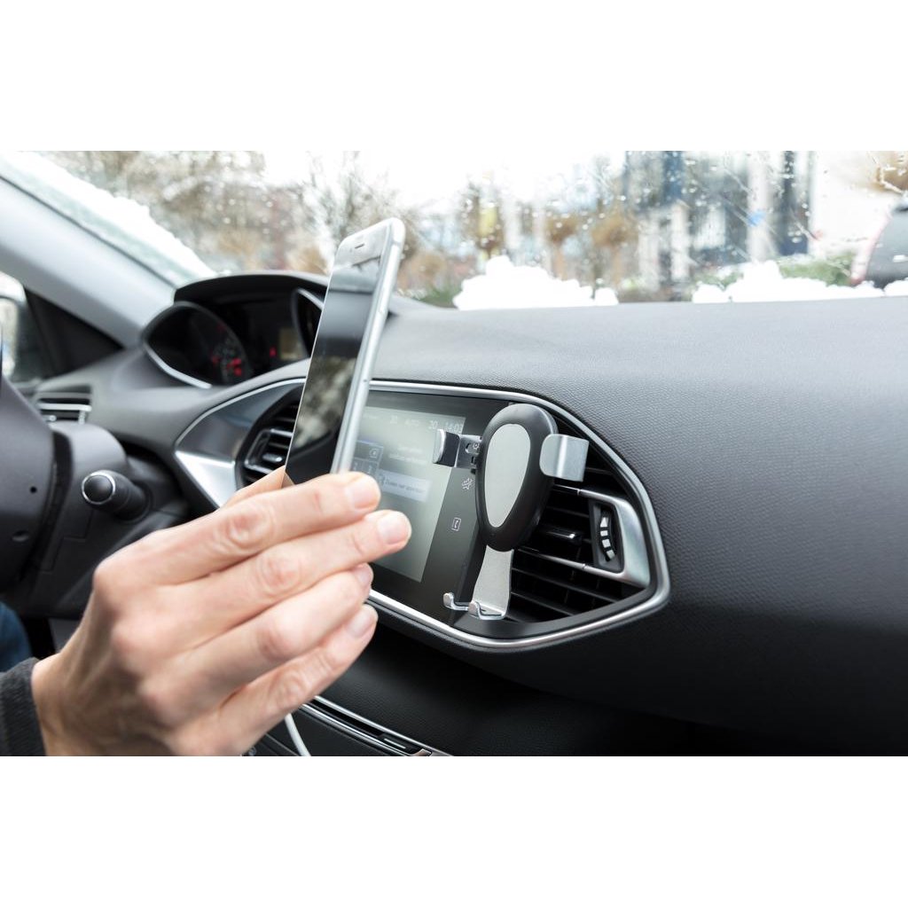 Universele telefoonhouder die eenvoudig kan worden bevestigd aan het luchtrooster van je auto. Deze houder heeft het voordeel dat je met één hand je telefoon kan plaatsen en verwijderen. De verstelbare aluminium armen houden je telefoon zelfs op hobbelige wegen op zijn plaats dankzij het slimme en betrouwbare ontwerp. De onderste arm heeft een opening om je laadkabel doorheen te halen om tijdens het rijden je telefoon op te laden. Compatibel met zowel horizontale als verticale luchtroosters. Geschikt voor alle 4-6" telefoons.