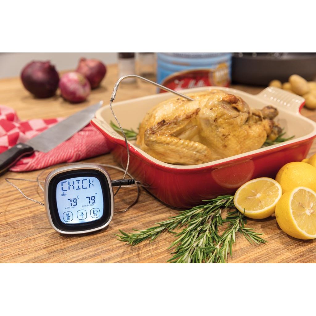 Het perfecte hulpje bij een BBQ of steak diner. Deze digitale thermometer zal je precies vertellen wanneer jouw vlees naar wens is bereid. Verpakt in luxe geschenkverpakking met tips om de perfecte steak te bereiden. Inclusief batterijen voor direct gebruik.
