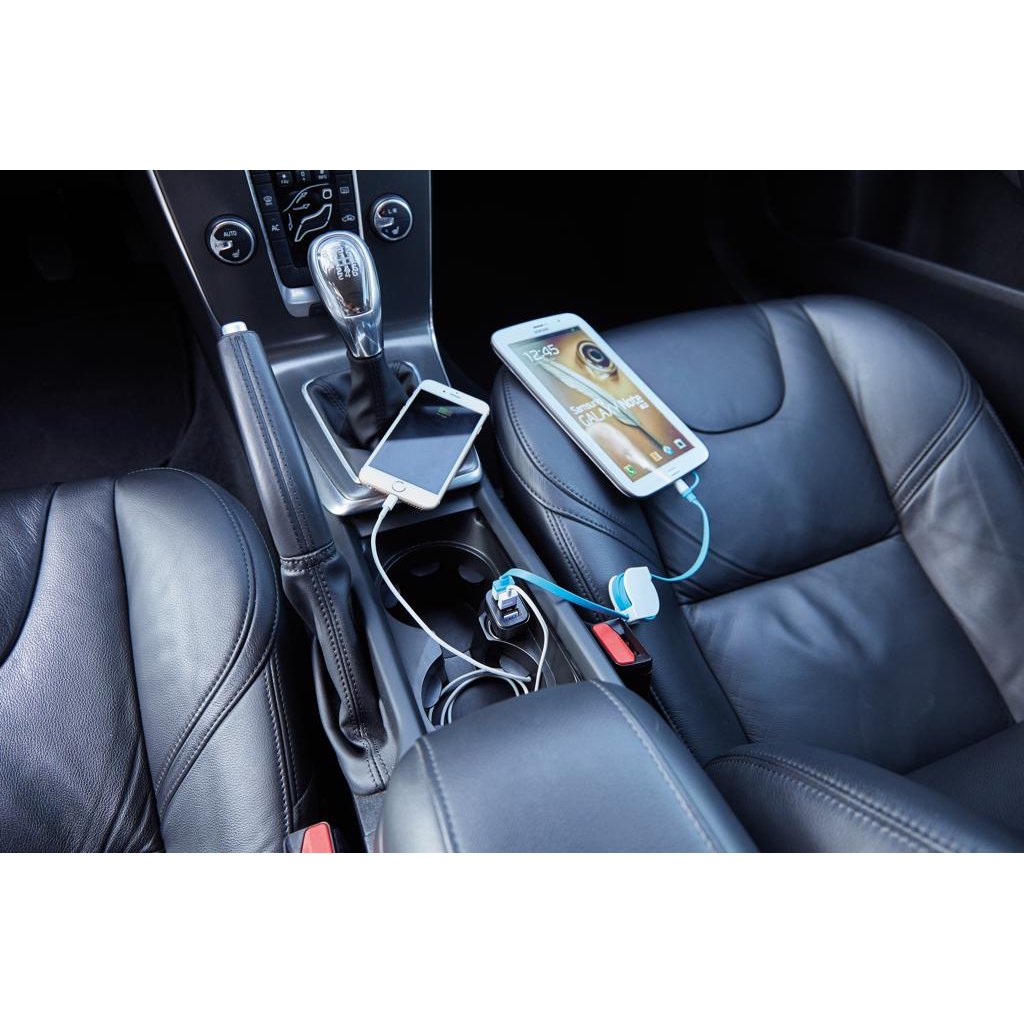 Krachtige 5V/3.1A auto lader met drie USB poorten die drie mobiele apparaten tegelijk kan opladen. Is te gebruiken voor zowel mobiele telefoons als tablets van zowel IOS als Android.