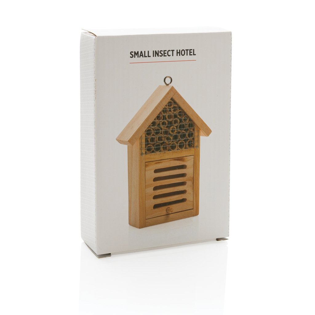 Insecten zijn onmisbaar in de natuur! Door dit insectenhotel te plaatsen help je ze om van daaruit hun nuttige werk te doen. Dit kleine insectenhotel zal solitaire bijen en gaasvliegen huisvesten. Het insectenhotel moet op een zonnige plaats, beschermd tegen wind en regen, minimaal 50 cm vanaf de bodem worden geplaatst. De voorkant met de opening moet op de zonzijde worden geplaatst. Aan de achterkant zit een gat om gemakkelijk op te hangen. Gemaakt van dennenhout.