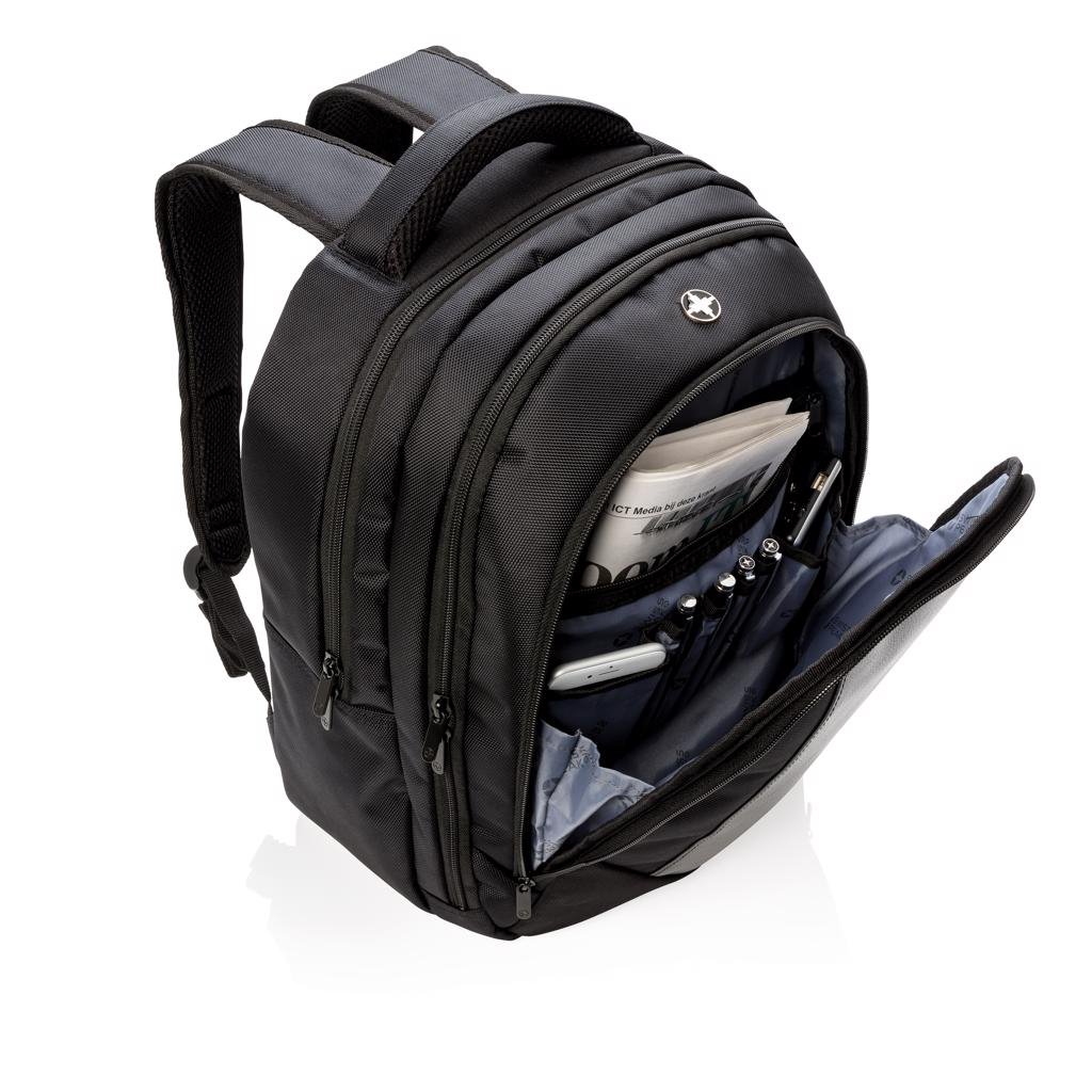 Bescherm je laptop in stijl. Zowel je rug als je laptop worden beschermt dankzij het gevoerde laptop compartiment. De fraai ontworpen rugtas biedt additionele compartimenten, organizers die met ritsen die kunnen worden afgesloten. Geregistreerd ontwerp®.