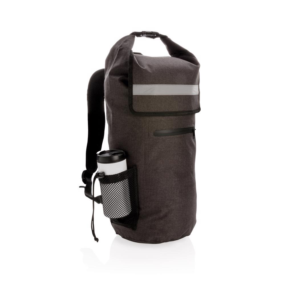 Rugzak van 300D polyester met waterbestendig IPX6 hoofdvak houdt al jouw bezittingen veilig. Deze tas is perfect bij wateractiviteiten of op reis. Inclusief zijvak voor waterfles en reflecterende veiligheidsriem. Het voorvak met rits is niet waterbestendig.