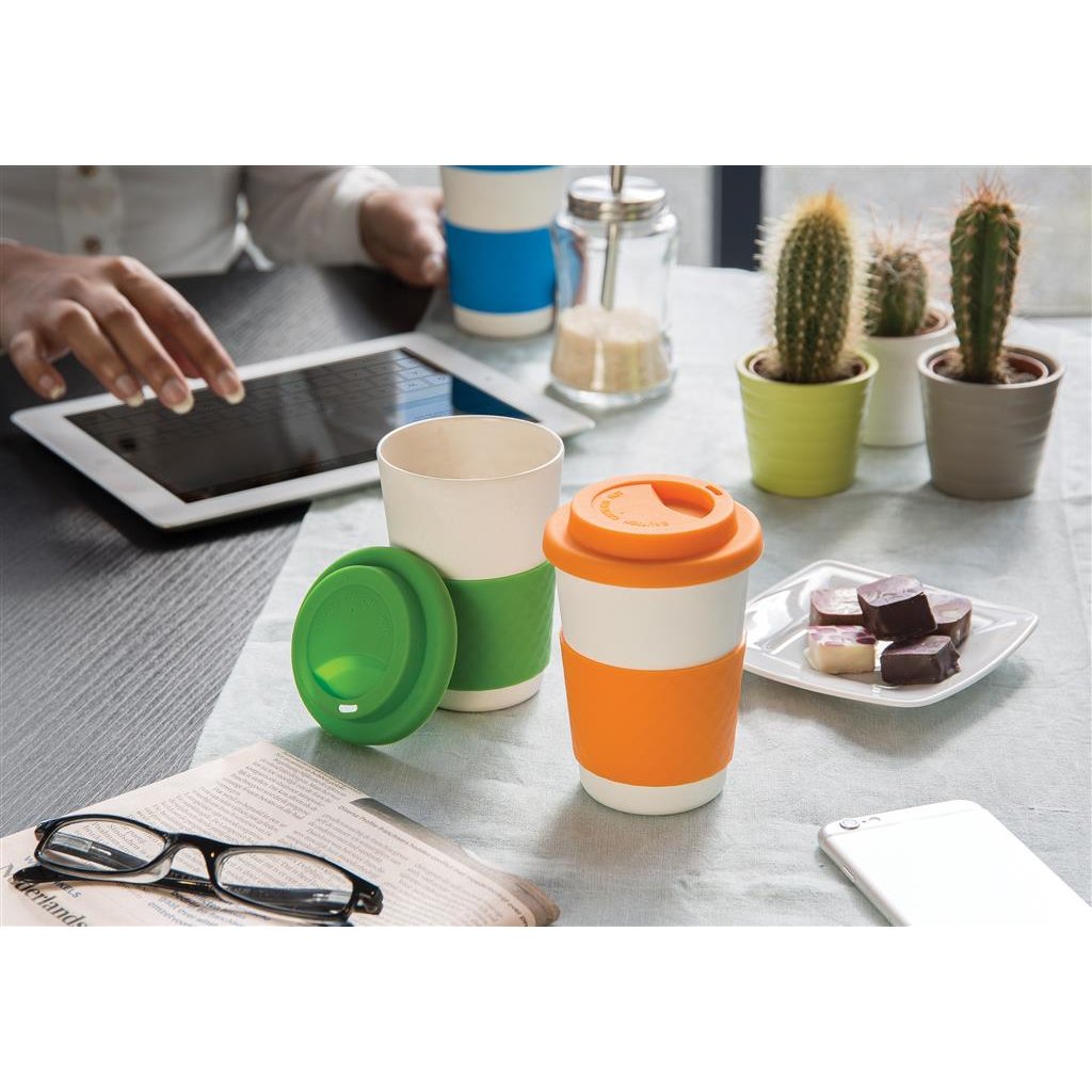 Gemaakt van natuurlijk geteelde, biologische bamboe. Met siliconen deksel en grip. Vrij van schadelijke kunststoffen. Herbruikbaar en zeer duurzaam. Inhoud 270 ml. Dit is een enkelwandige beker; er kan warmteoverdracht optreden. Wees altijd voorzichtig met warme dranken.