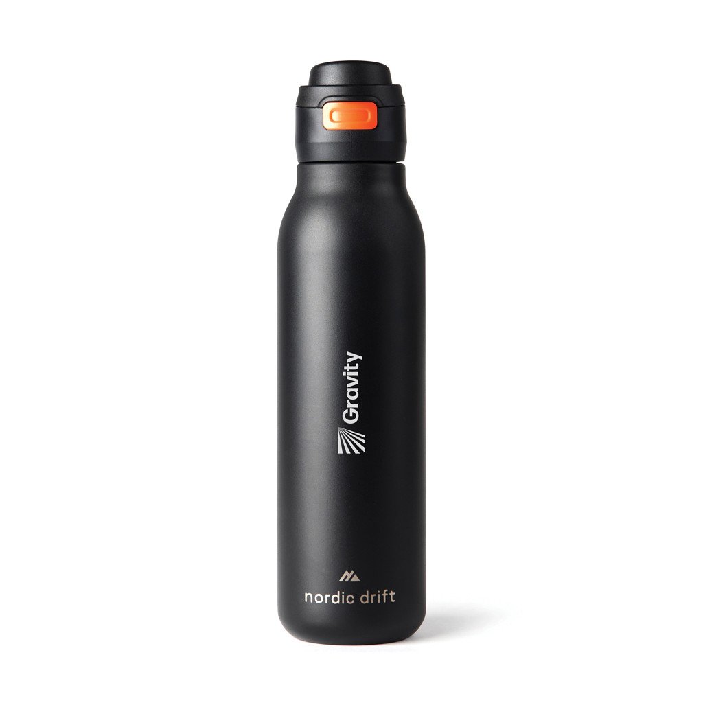 Blijf gehydrateerd tijdens elk avontuur met de Nordic Drift avontuurlijke drinkfles met enkele wand (750 ml). Gemaakt van 68% hoogwaardig RCS-gecertificeerd gerecycled roestvrij staal, met een duurzaam poedergecoate body en een draaghendel die tevens als vergrendeling dient, waardoor de drinkbus veilig en volledig lekvrij blijft. Lichtgewicht en robuust, deze 750 ml-fles is perfect voor wandelingen, sport of dagelijks gebruik en combineert praktisch gemak met duurzaamheid en outdoorprestaties Wordt in bulk verpakt.