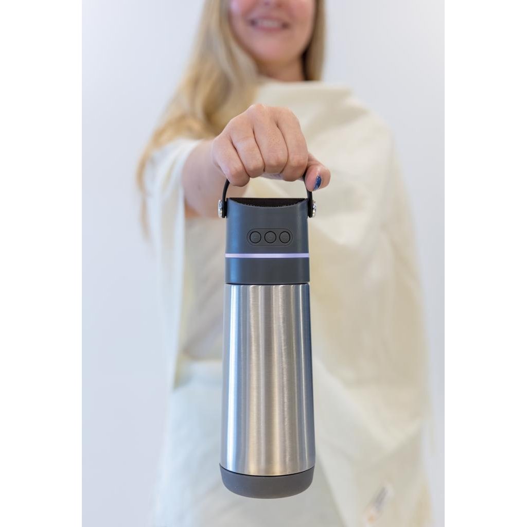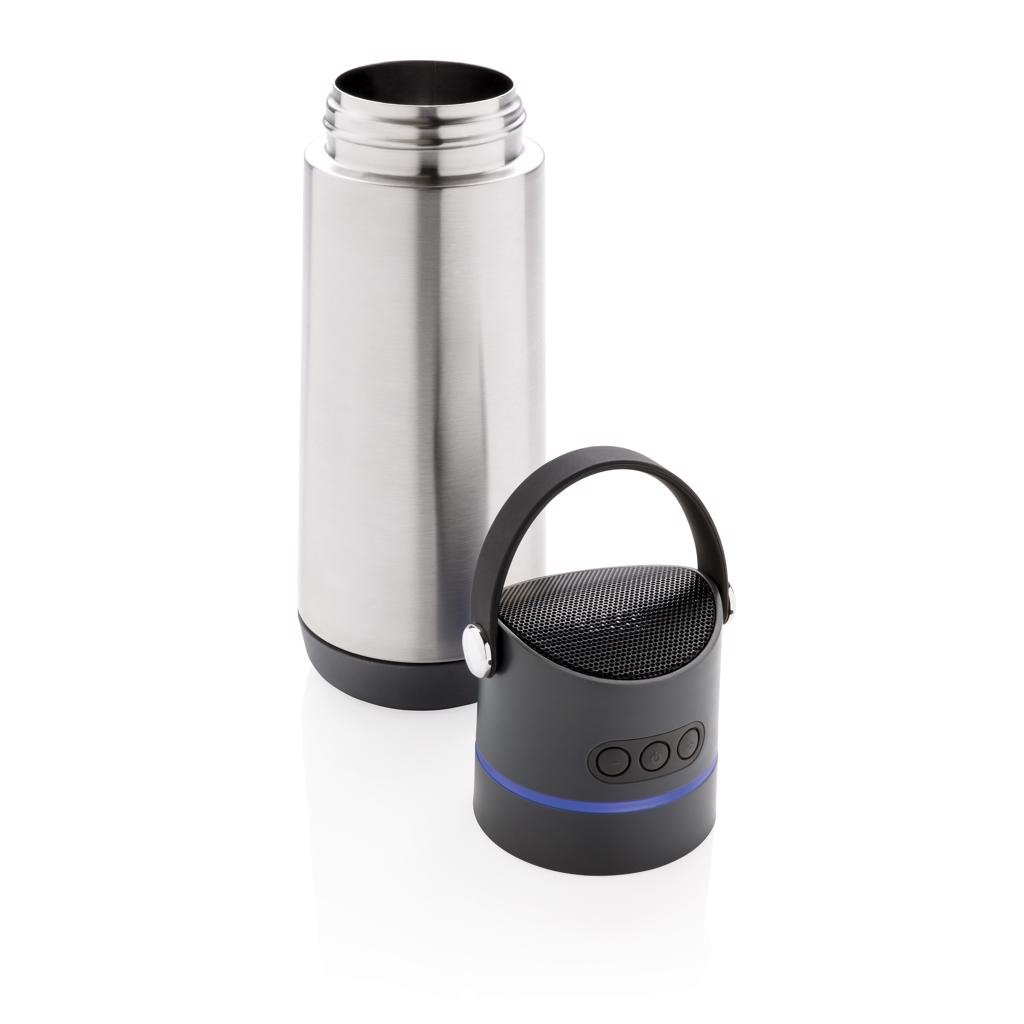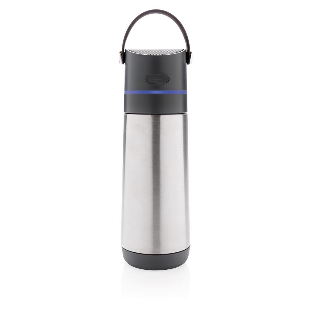 Party like it is 2019! Deze duurzame roestvrijstalen drinkbus heeft een dubbelwandige vacuümconstructie en is lekbestendig. In de drop bevinden zich een 3W draadloze luidspreker en moodlight. Hang de speaker op aan de draagband en geniet; ideaal voor buiten. Inhoud 500 ml.