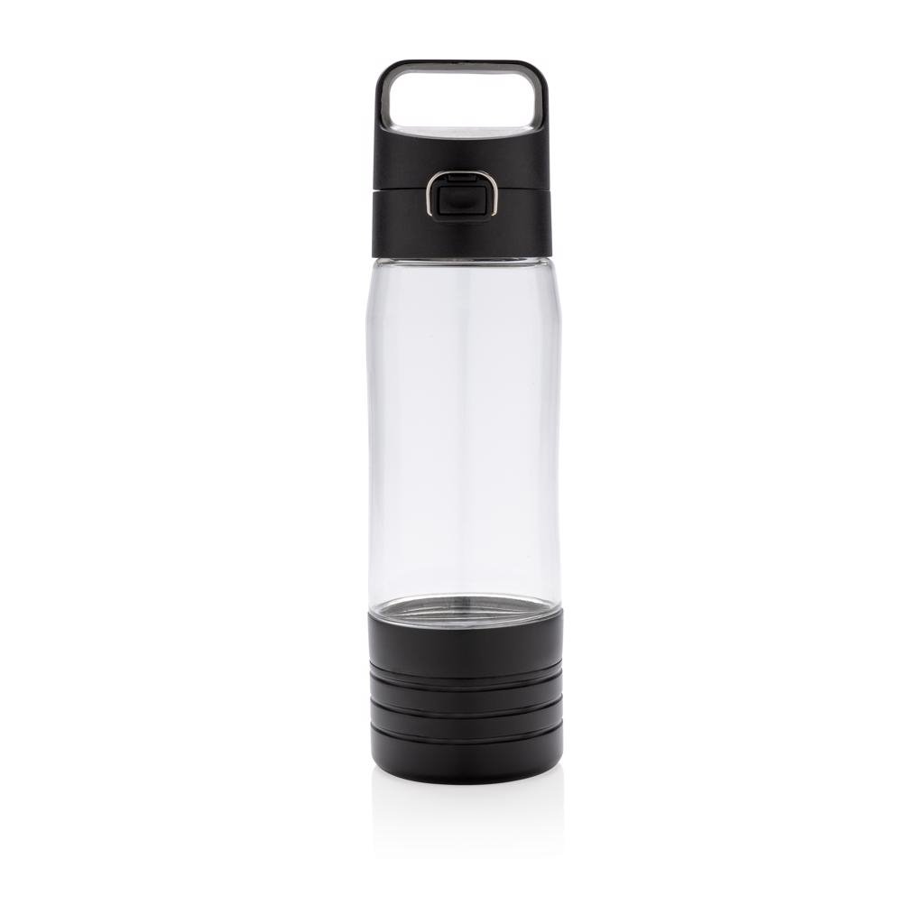 Lekvrije en afsluitbare tritan fles met handvat. Inhoud: 600 ml. Onderste compartiment bevat draadloze oordopjes. 600 mAh batterij voor 4 uur muziek. Inclusief 50 cm lange micro usb-kabel. Geregistreerd ontwerp®.
