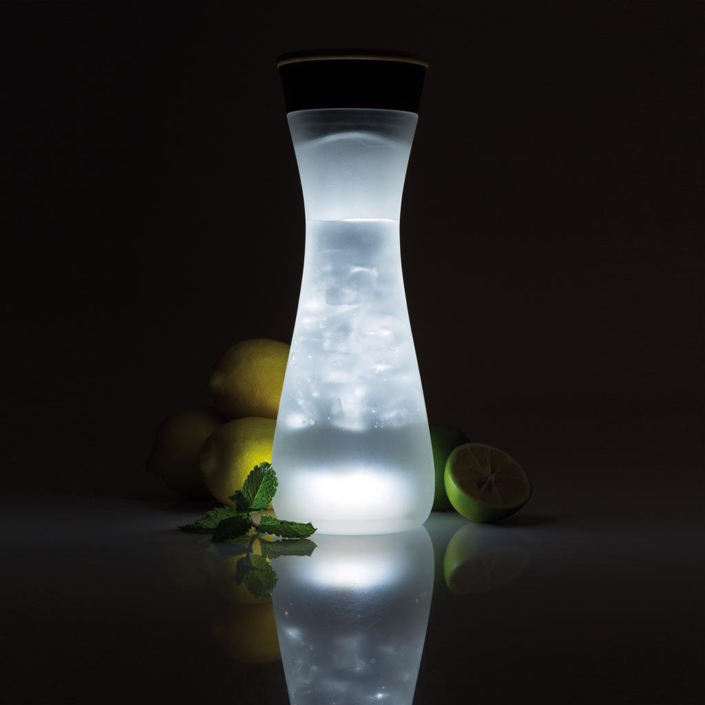 Lumm is een glazen karaf die extra sfeer brengt aan je dinertafel. De bodem is ietwat hol en het daarin verwerkte LED verlicht de drank in de karaf. Af te sluiten met de bamboe dop. Geregistreerd ontwerp®.