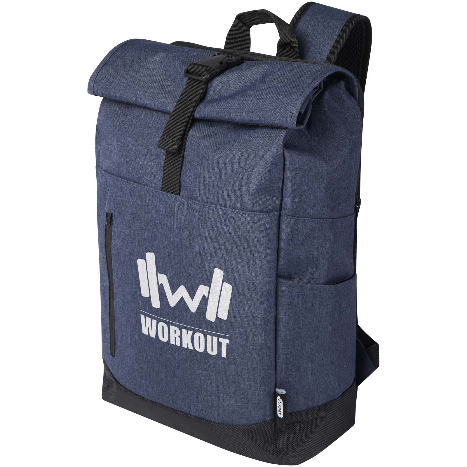 15,6 inch laptoprugzak met gewatteerd laptopvak, gewatteerde verstelbare schouderbanden, hoofdvak met ritssluiting en rolsluiting, 2 handgrepen en voorvak met ritssluiting. GRS-gecertificeerd.