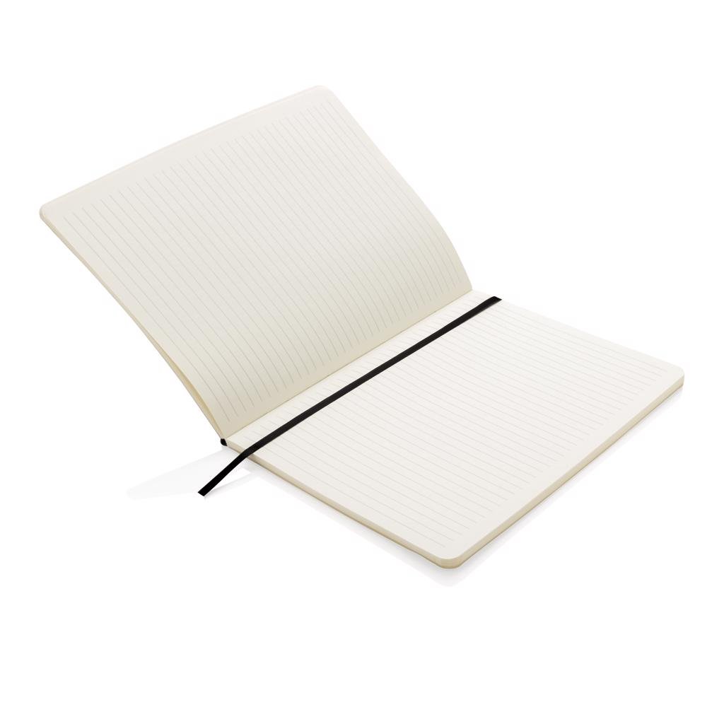 Flexibel notitieboek met soft cover. B5 formaat: 19x25cm. Voorzien van bladwijzerlint en opbergvak aan achterzijde. Afsluitbaar met elastieken band. 160 crème kleurige pagina's van 78g/m².