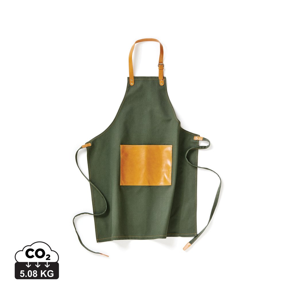 Een robuust keukenschort van stonewashed canvas (500 g/m²) met details in PU-materiaal. Een duurzaam schort dat met de tijd alleen maar mooier wordt.