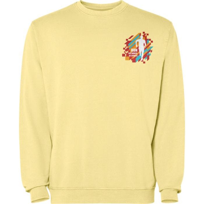 Ben je niet zeker hoe je je drukbestand moet opmaken? Bekijk de opmaakrichtlijnen van unisex sweaters met ronde hals.