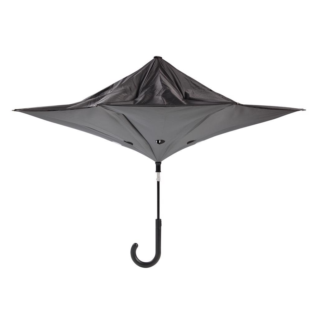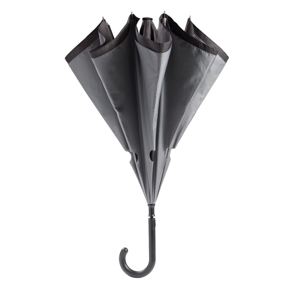 Omkeerbare 23" paraplu gemaakt van 190T pongee materiaal. Handmatig openen, automatisch sluiten. Fiberglas baleinen en frame. Windproof systeem.