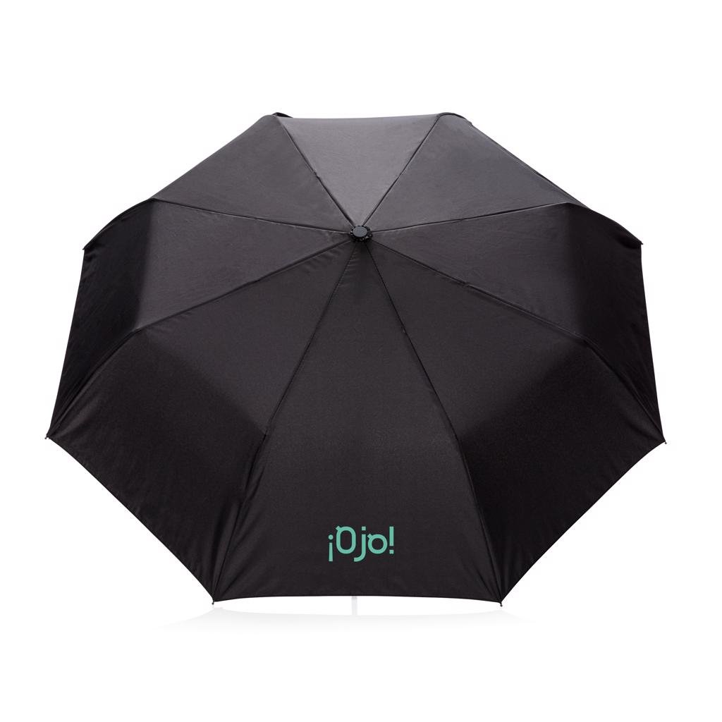 Deluxe 21 inch opvouwbare automatische open paraplu. 190T pongee. Zwart gecoat metalen frame met glasvezelribben. Handvat in dezelfde kleur als het hoesje.