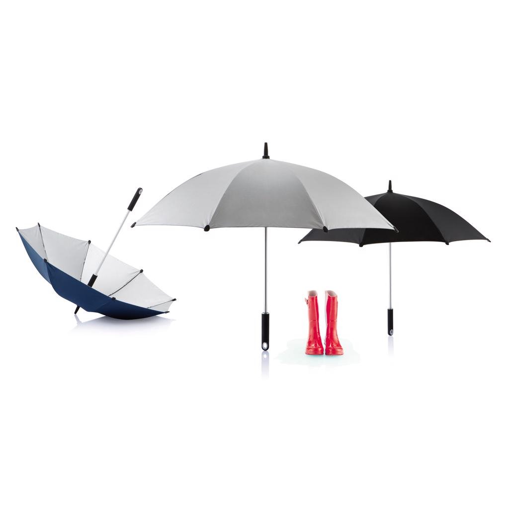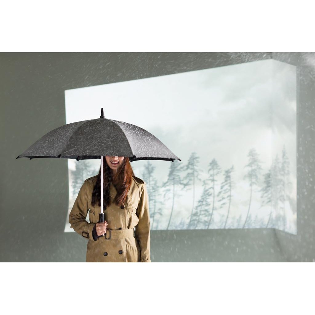 Hurricane is een paraplu van comfortabele afmeting in materiaal van topkwaliteit om je te beschermen tegen zowel regen als, met zijn UV-bescherming, tegen zon. Het openingsmechanisme maakt dat deze paraplu gemakkelijk in het gebruik is. Handmatige designparaplu van 190T pongee polyester met aluminium schacht en top, glasvezel baleinen, ABS tips en handvat. Verpakt in XD Design geschenkverpakking. Geregistreerd ontwerp®.