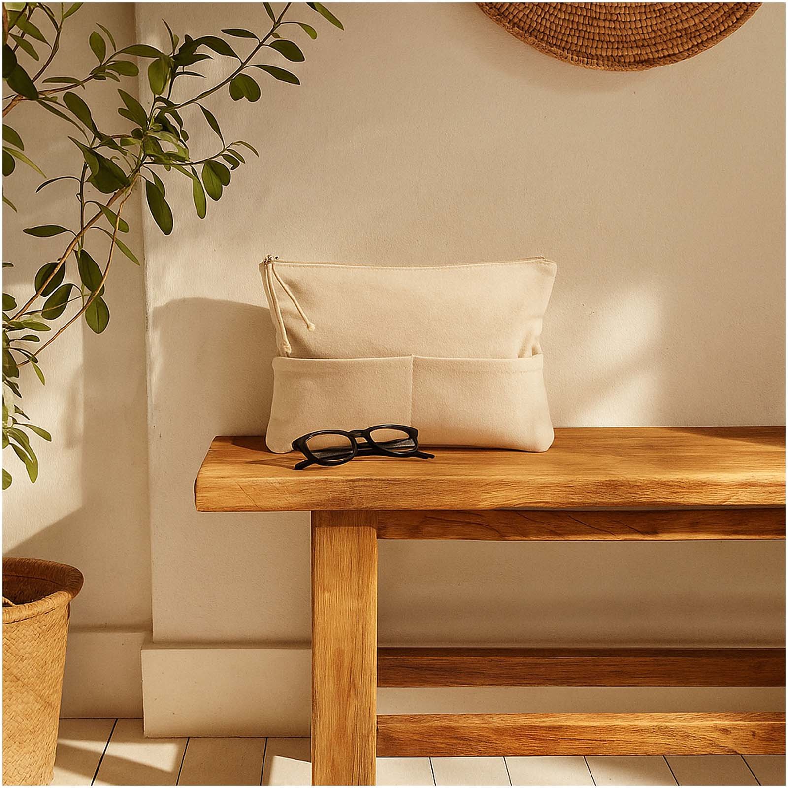 De Zipzip pouch is een stijlvolle manier om je dagelijkse benodigdheden georganiseerd te houden. Een stevige rits houdt je spullen veilig, terwijl twee kleine voorvakken (14 x 10,5 cm) je snel toegang geven tot je meest gebruikte items. Gemaakt van 100% organisch katoen (420 g/m²), combineert deze duurzaamheid met een duurzamere keuze. Met zijn afmetingen van 28 x 20 cm is hij perfect voor het opbergen van schrijfwaren, cosmetica of dagelijkse benodigdheden.