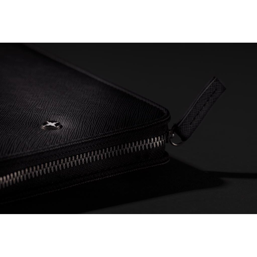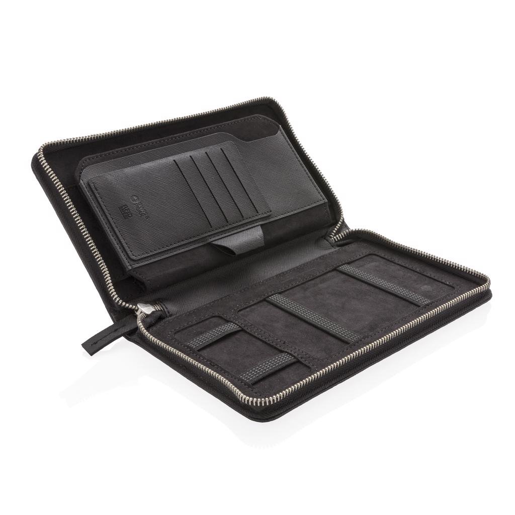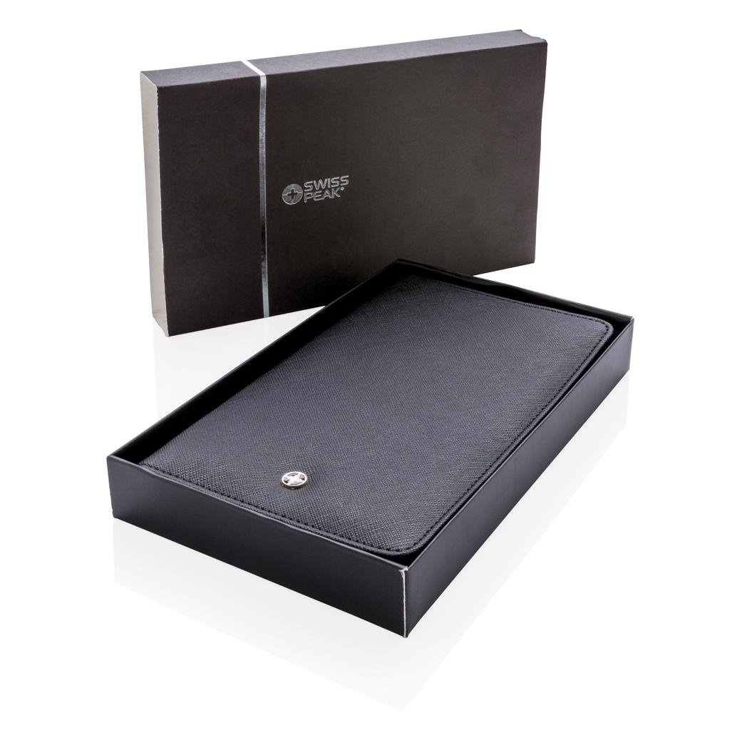 Luxe reisportefeuille met RFID-bescherming bewaart al je reisdocumenten zoals paspoort, tickets en geld veilig. Met 4 sleeves voor kaarten en pennenlus. De rechterkant kan je smartphone vasthouden.