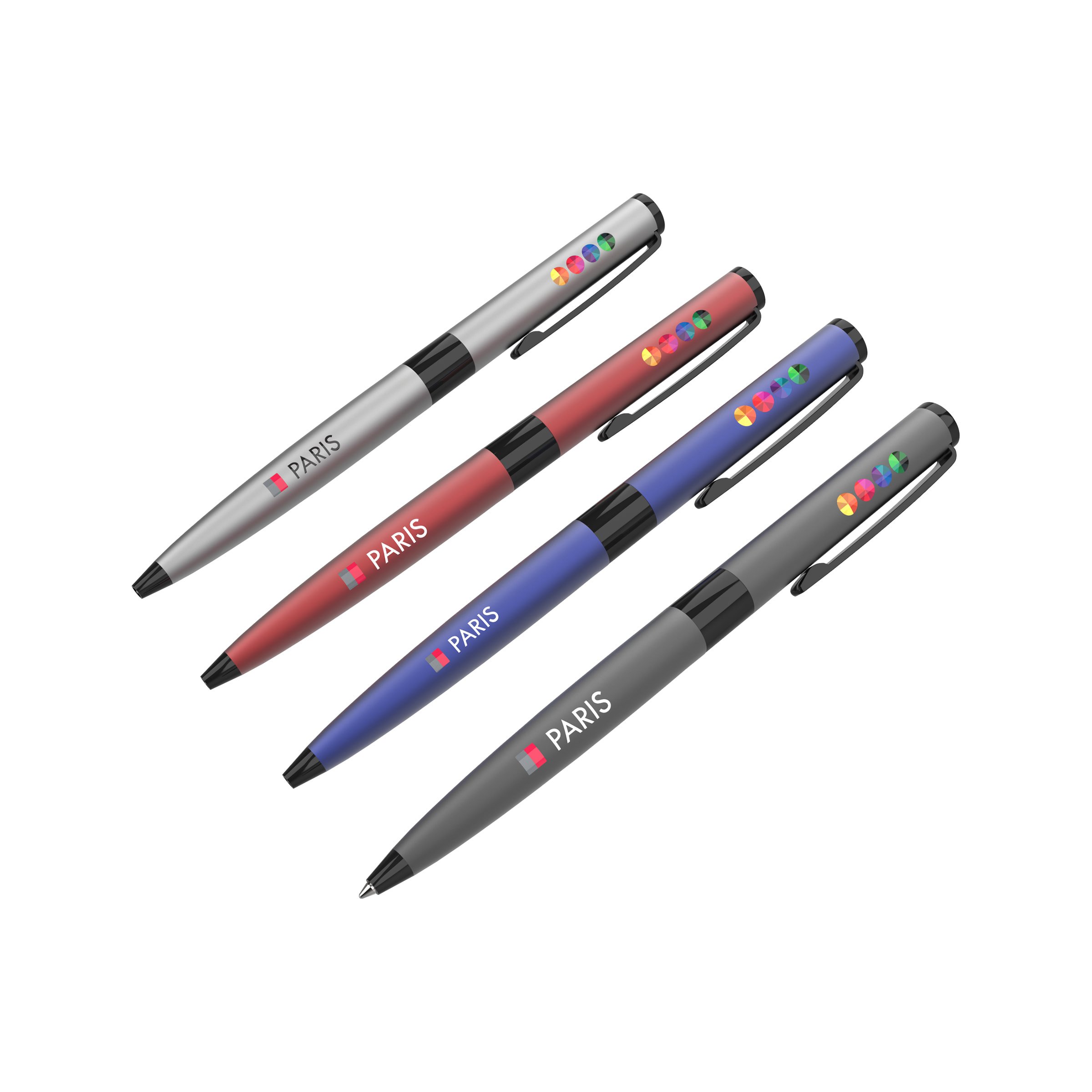 De Paris Pen is een traditionele pen in een zeer eigentijdse uitvoering. De vorm van deze pen is eenvoudig, maar stijlvol. De behuizing, clip en punt zijn van aluminium gemaakt. Zwartschrijvend.
