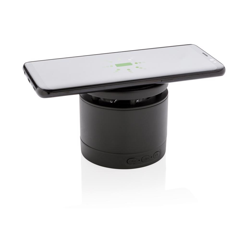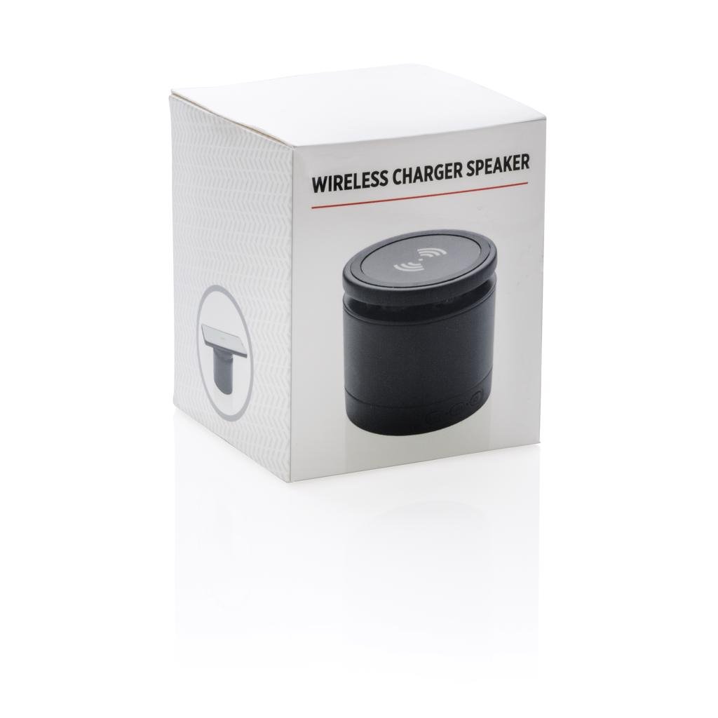 Deze lader combineert het luisteren naar je favoriete nummers met je telefoon draadloos laden. Sluit de meegeleverde 150 cm micro thuis of op kantoor aan op je USB-oplader en je kan direct beginnen. Het bevat een 3W draadloze luidspreker en een 5W draadloze oplader. De luidspreker heeft een batterij van 400 mah en BT 4.2 voor een speeltijd van maximaal 3 uur en een werkingsafstand tot 10 meter. Zorg er bij gebruik van beide functies voor dat het apparaat op een voedingsbron is aangesloten. Input 5V/1A, Draadloze output: 5V/1A 5W. Draadloos opladen compatibel met alle QI-apparaten zoals Android nieuwste generatie, iPhone 8 en hoger. Geregistreerd ontwerp®.