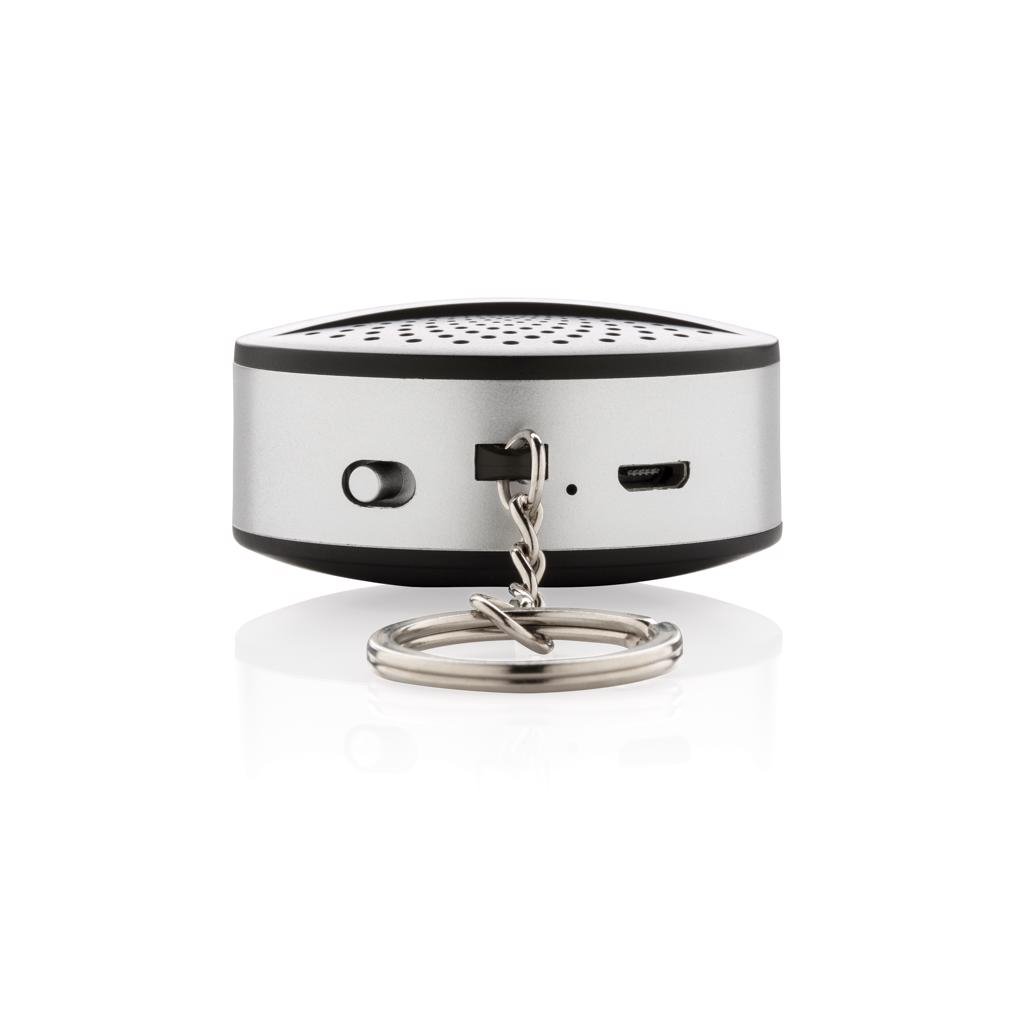 Draagbare en compacte 2W draadloze luidspreker die eenvoudig aan je sleutelhanger kan worden bevestigd om hem overal mee naar toe te nemen. De 200 mAh batterij geeft je een speelduur van 1,5 uur en een werkingsafstand van 10 meter. Het opnieuw opladen van de luidspreker is gedaan minder in dan een uur. Gemaakt van lichtgewicht ABS. Met BT 4.1 voor een soepele verbinding. Inclusief micro-USB-kabel.