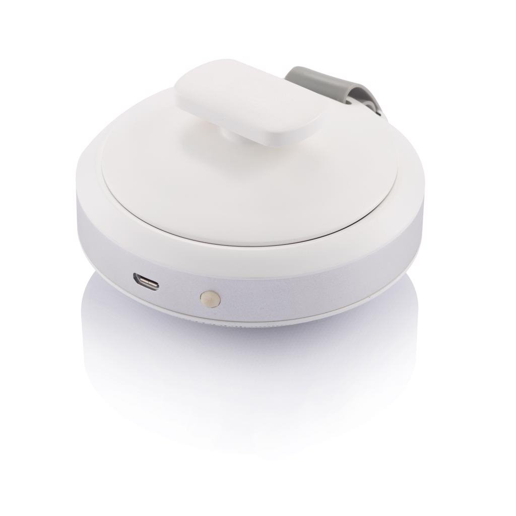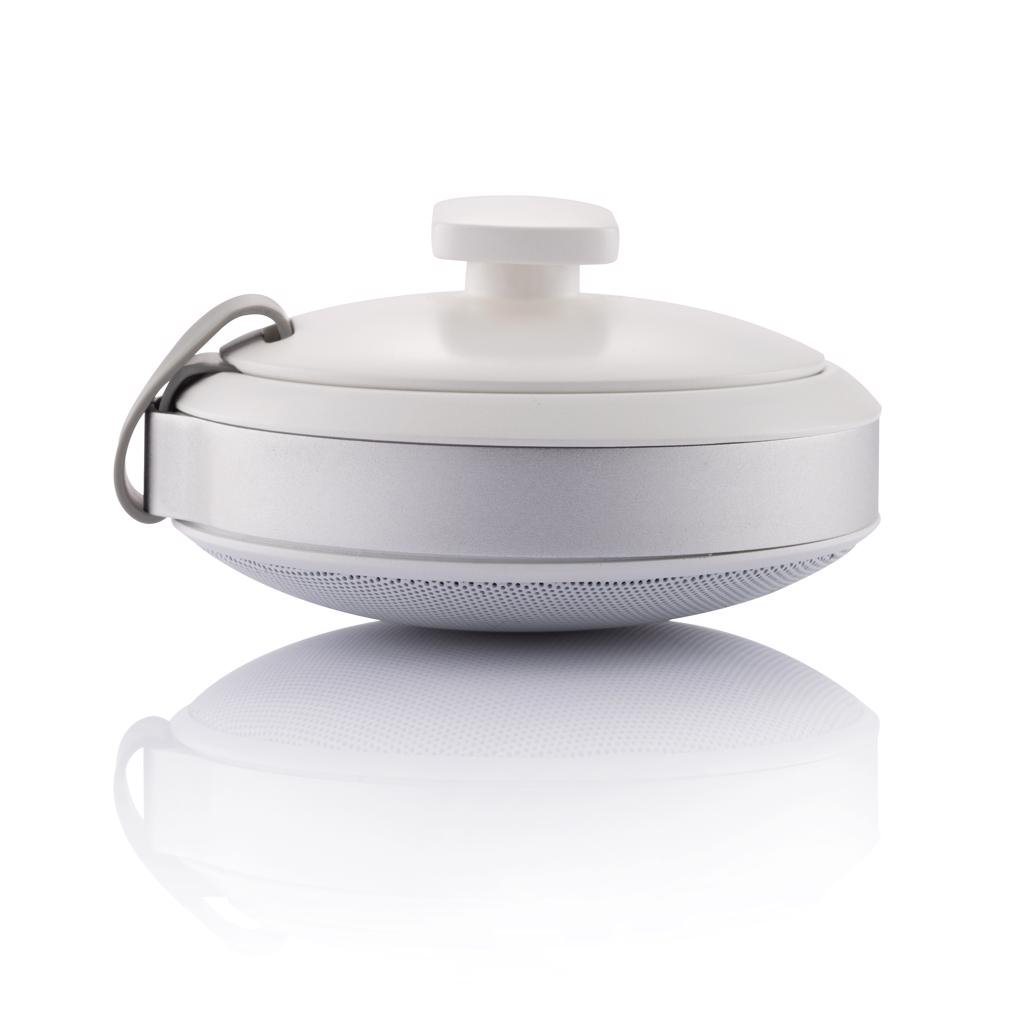 Notos is een compacte 3W draadloze BT 4.1 speaker met optimale geluidskwaliteit en snelle verbinding. De solide aluminium ring is te openen met een simpele draai en kan dan bevestigd worden aan een raam om overal jouw muziek te kunnen luisteren. De 500 mAh batterij verzorgt 4 uur luisterplezier en met de microfoon kan je zelfs telefoongesprekken voeren. Inclusief micro USB kabel. Geregistreerd ontwerp®.