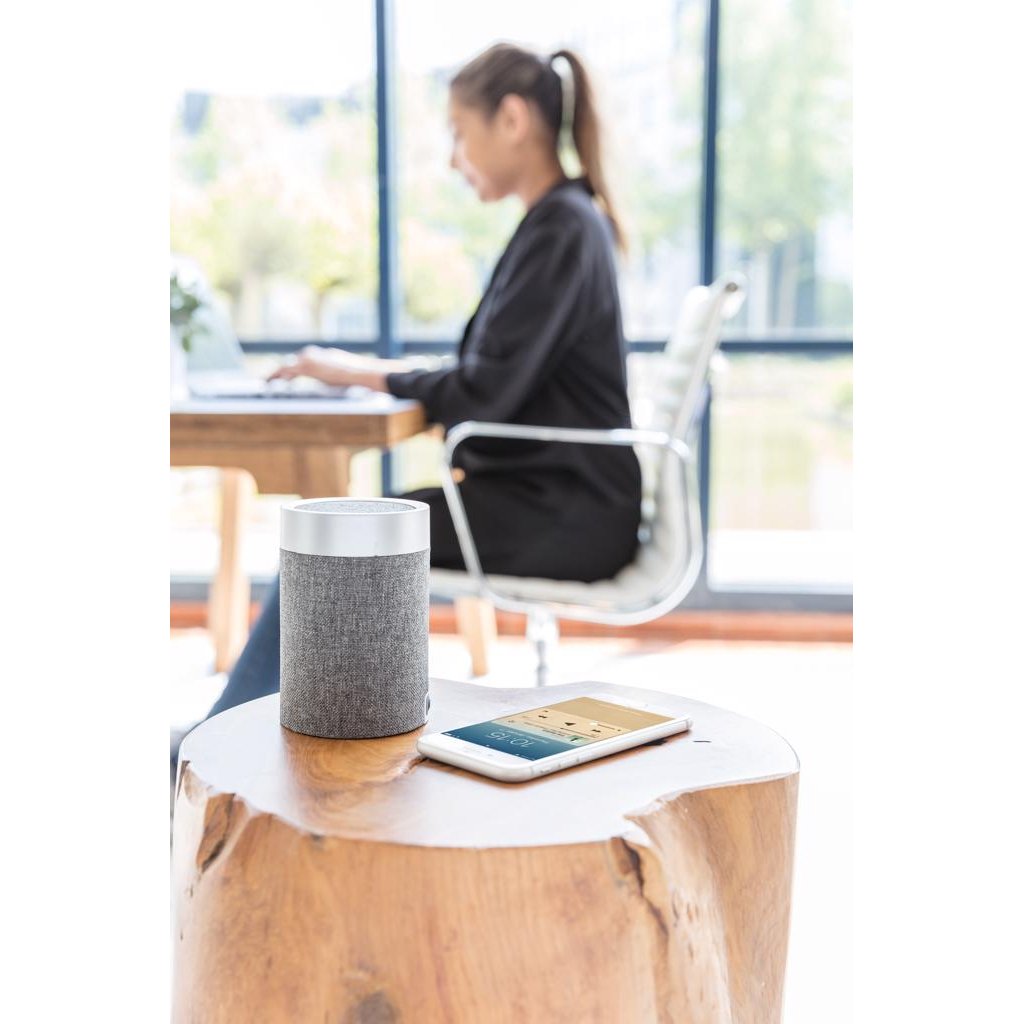 De Vogue 3W draadloze luidspreker heeft een elegant ontwerp en levert de beste beats voor thuis of op kantoor. De trendy ronde vorm en het stijlvolle materiaal zien er fantastisch uit, waar je de speaker ook neerzet. De speaker maakt gebruik van BT 4.2 voor een soepele en supersnelle verbinding. De 1.200 mAh batterij garandeert tot 5 uur speeltijd en kan in minder dan 3 uur worden opgeladen. Draadloze bedieningsafstand tot 10 meter. De luidspreker heeft gladde rubberen strips aan de onderzijde. Dit voorkomt schuiven én verbetert het geluid. Met microfoon en opneemfunctie om oproepen te beantwoorden.