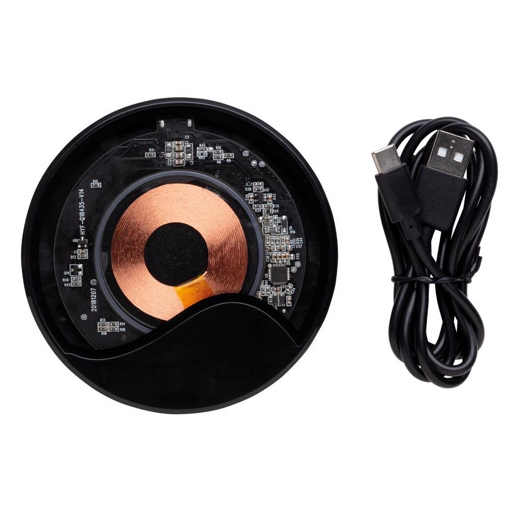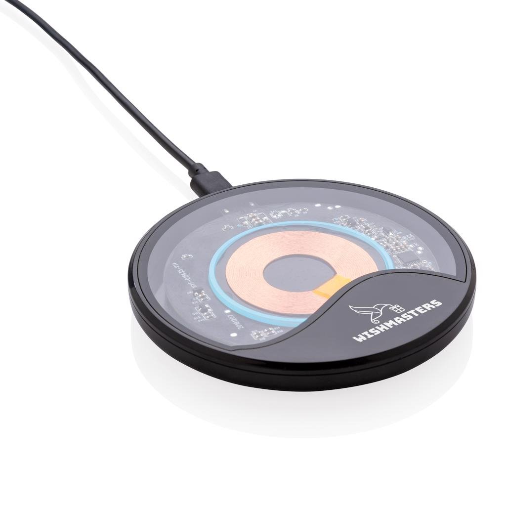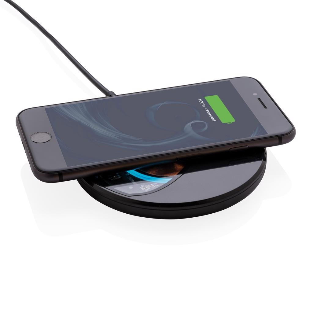 State-of-the-art ontwerp draadloze oplader met transparant design voor optimale exposure van de A+ kwaliteit componenten, hoogwaardige laadspoel en blauwe LED oplaadlampje. De draadloze lader ondersteunt 10W snel en veilig opladen om je telefoon twee keer zo snel op te laden als de meeste draadloze opladers op de markt. Draadloos opladen compatibel met alle QI-apparaten zoals Android nieuwste generaties, iPhone 8 en hoger. Input: 5V/2A; Draadloze output: 9V/1.1 10W. Inclusief 150 cm USB naar Type C kabel.