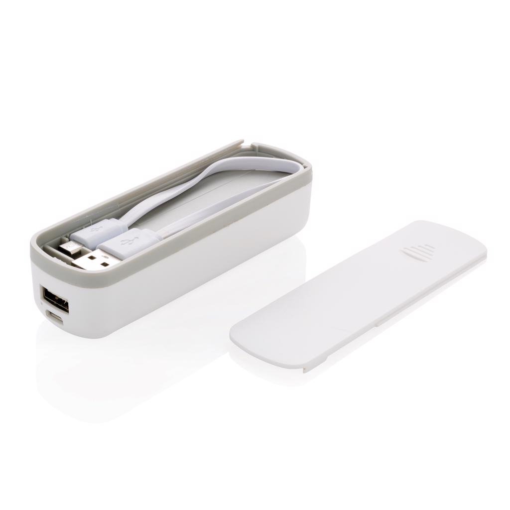 Powerbank met speciaal compartiment om jouw USB kabel op te bergen. Zo vergeet je nooit de oplaadkabel voor jouw powerbank of Android telefoon. Capaciteit 2.200 mAh, output 5V/1A, input 5V/1A. Inclusief micro USB kabel.