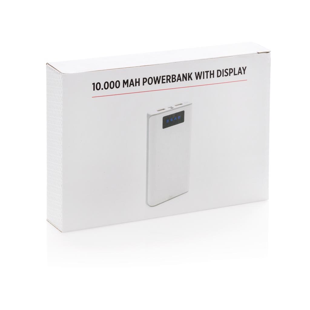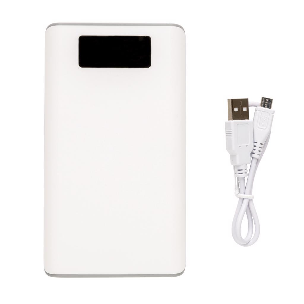 Powerbank met 10.000 mAh lithium batterij en batterij-indicator om de beschikbare energie weer te geven (25%-50%-75%-100%). De powerbank beschikt over 2 USB poorten (max 2.1A) om twee apparaten tegelijk te kunnen laden. ABS materiaal. Output: 5V/2.6A, input 5V/2A. Inclusief micro USB kabel.