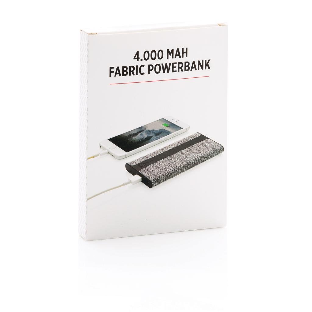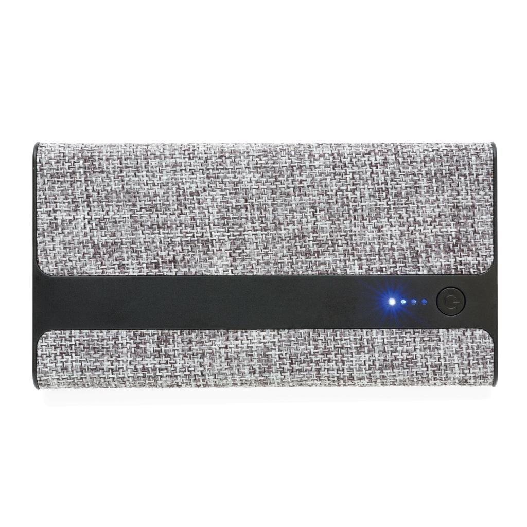 Lichtgewicht en trendy powerbank met linnen afwerking. ABS middengedeelte met geïntegreerde power indicatie lampjes. Capaciteit 4.000 mAh, output 5V/1A, input 5V/1A. Inclusief micro USB kabel.