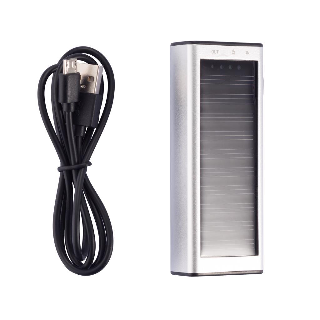 Compacte en krachtige 2.200 mAh powerbank met geïntegreerd solar paneel. De solar charger is via zonne-energie of via USB op te laden. Output 5V/1A en input 5V/0.8A. Inclusief micro USB kabel.