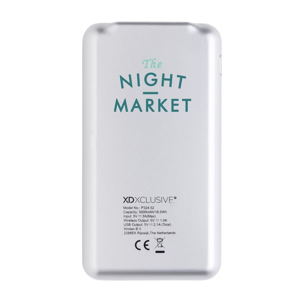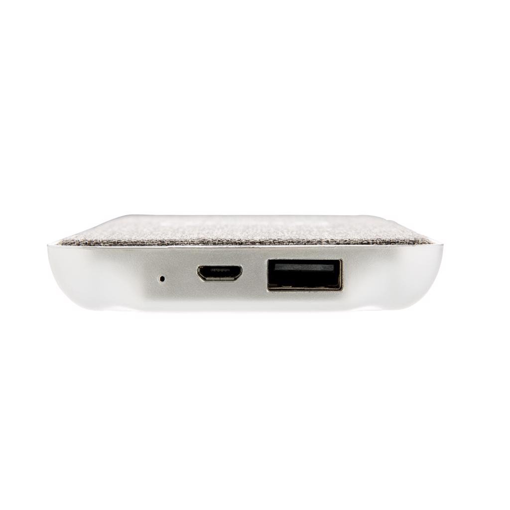Houd je telefoon opgeladen met deze modieuze draadloze powerbank die perfect in je interieur past. Met de 5.000 mAh-batterij kan je jouw telefoon 2 keer opladen met behulp van de 5W draadloze oplader. Als je telefoon geen draadloos opladen ondersteunt, kan je de USB-poort op de oplader gebruiken door je kabel aan te sluiten. Input 5V/1A. Output 5V/2.1A. Draadloze output 5V/1A 5W. Geregistreerd ontwerp®.