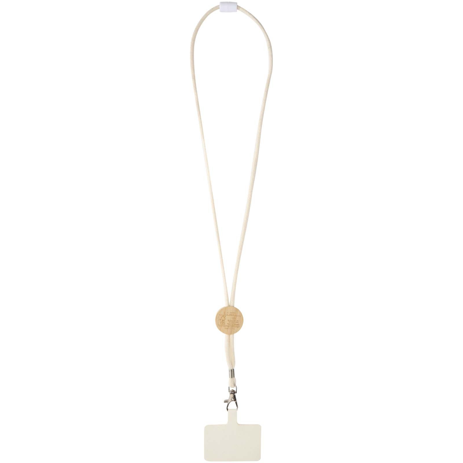 Draag je telefoon in stijl met de Adhab smartphone lanyard. Het middenstuk is gemaakt van verantwoord gewonnen bamboe, wat een natuurlijk accent toevoegt aan het ontwerp. Dit element verbetert niet alleen het uiterlijk, maar biedt ook een ideale ruimte voor branding. Deze praktische en stijlvolle lanyard is perfect voor dagelijks gebruik of evenementen.