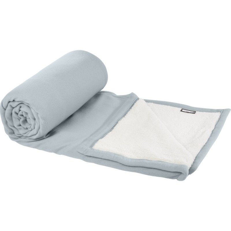 Ultrazachte RPET 140 g/m² polair fleece en 180 g/m² sherpa deken. Geleverd met een 190T RPET-draagtas met trekkoordsluiting. Verpakt in een gerecycleerde polybag. Afmetingen zak: lengte 40 cm, diameter 18 cm.
